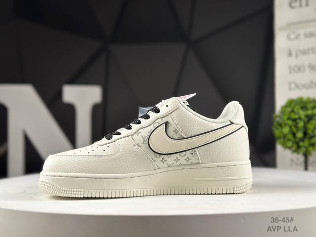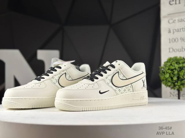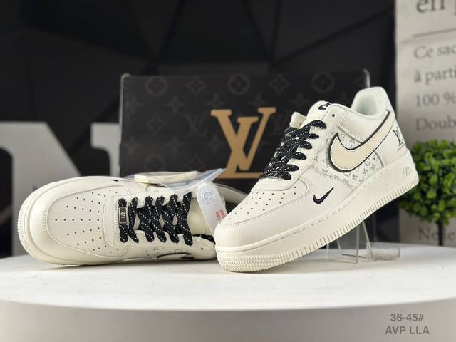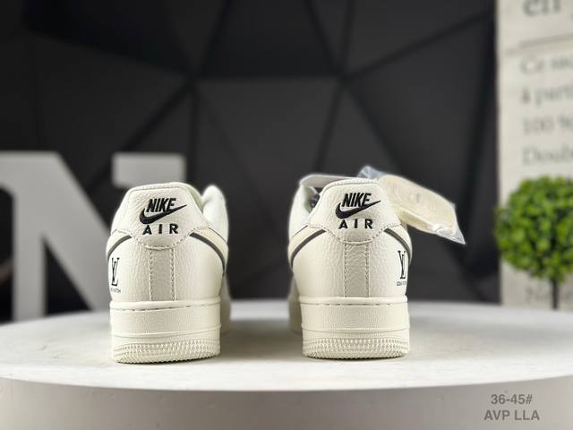 Company-level Nike Air Force 1 '07 Low "LV co-branded off-white small black hook" Air Force One low-top sports shoes casual shoes with difficult hemming and sewing process. Original last, original cardboard, original shoe box, custom hardware accessories, built-in full-palm air cushion, original sole