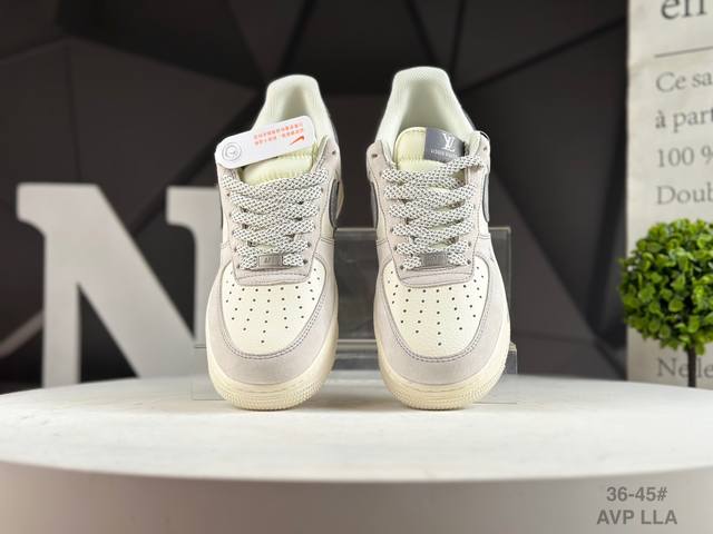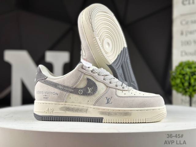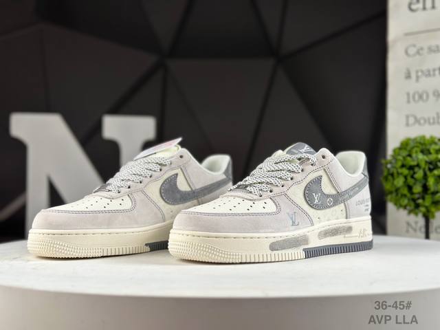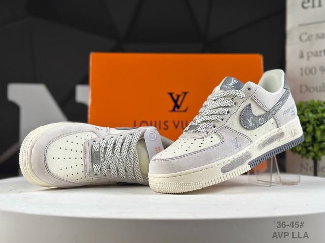 Company-level Nike Air Force 1 '07 Low "Lv Joint Double Gray Graffiti" Air Force One low-top sports shoes casual shoes with difficult hemming and sewing process. Original last, original cardboard, original shoe box, customized hardware accessories, built-in full-palm air cushion, original sole