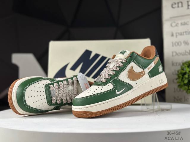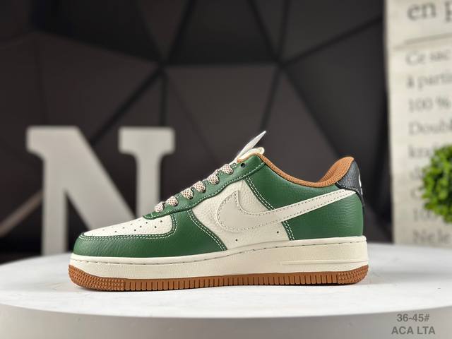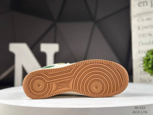 Company-level Nike Air Force 1 '07 Low "Un co-branded grass green splicing raw rubber" Air Force 1 low-top sports shoes and casual shoes. The hem sewing process is difficult. Original last, original cardboard, original shoe box, customized hardware accessories, built-in full-palm air cushion, original sole