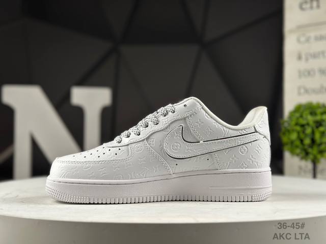 Company-level Nike Nike Air Force 1 '07 Low "Louis Vuitton Lv Joint --- Pure White Lv Three-dimensional Printing" High-end customized low-top casual sneakers Custom shoe box Large factory pure original quality shipment Ultra-high cleanliness Leather material cut cleanly without any burrs Perfect details