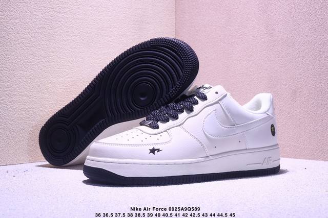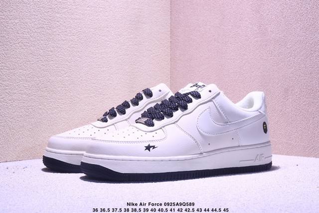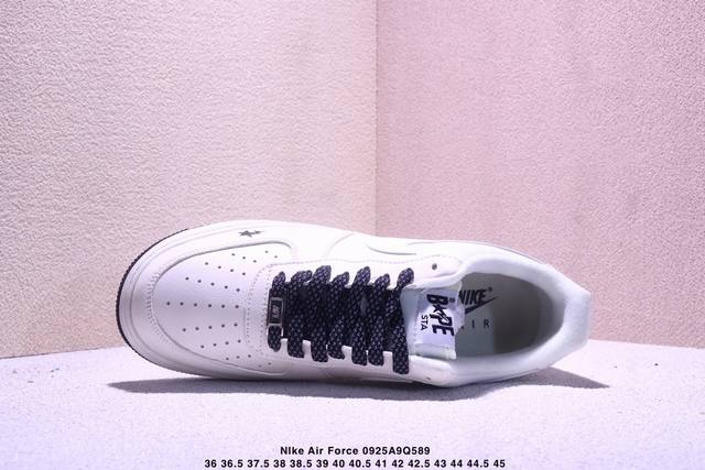 Corporate-grade Nike Air Force 1 '07 Low "Bape co-branded - beige and black with stars" Air Force 1 low-top sneakers, casual shoes, hemming and sewing process is difficult, original last, original cardboard, original shoe box, custom hardware accessories, built-in full-palm air cushion, original sole