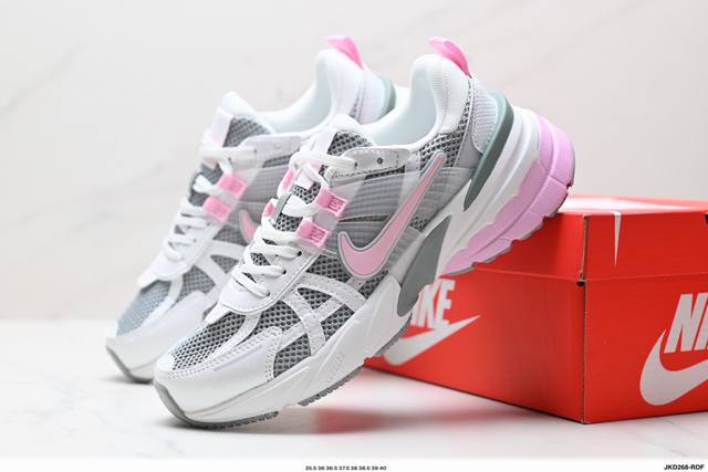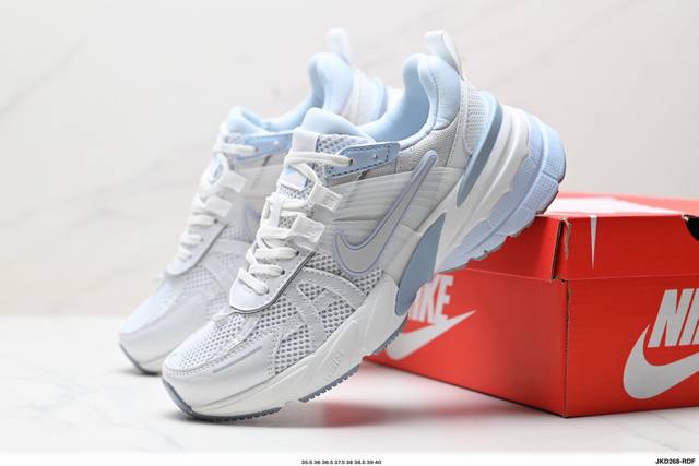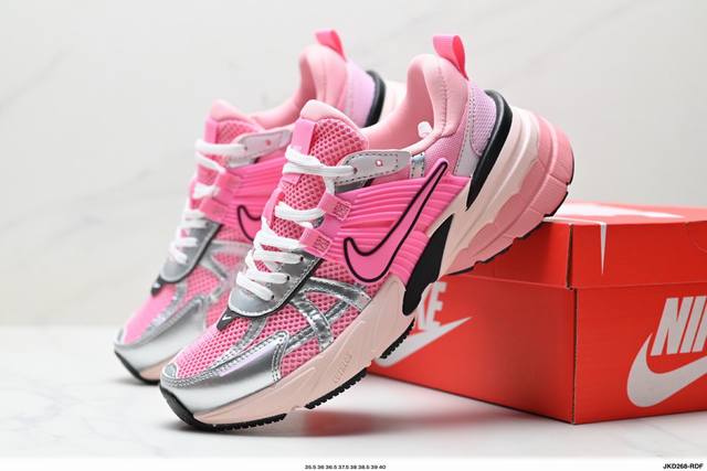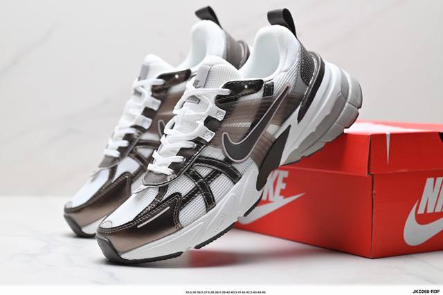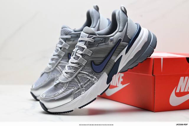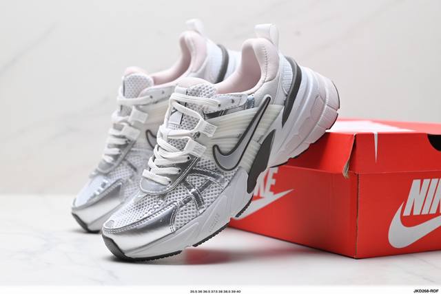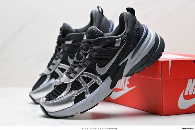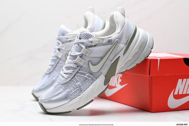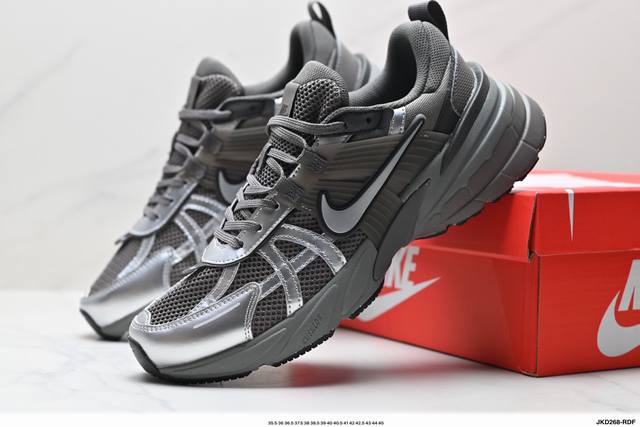 Corporate-grade Nike V2K Run running shoes, retro-inspired, breathable mesh sneakers in gray and silver. The compact upper material provides excellent support, and the chrome details on the side Swoosh and toe cap add a touch of flair. The insole is printed with Bill Bowerman's portrait, adding to the details. The midsole is decorated with a unique distressed effect, and the black outsole highlights the shoe's retro charm.