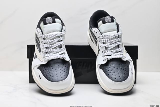 Corporate-level Nike Air Jordan 1 X Travis Scott Aj1 inverted hook Joe One inverted hook 'Diy' customized Nike low-top cultural basketball shoes