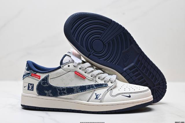 Corporate-level Nike Air Jordan 1 X Travis Scott Aj1 inverted hook Joe One inverted hook 'Diy' customized Nike low-top cultural basketball shoes