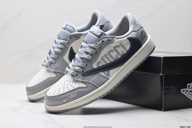 Corporate-level Nike Air Jordan 1 X Travis Scott Aj1 inverted hook Joe One inverted hook 'Diy' customized Nike low-top cultural basketball shoes