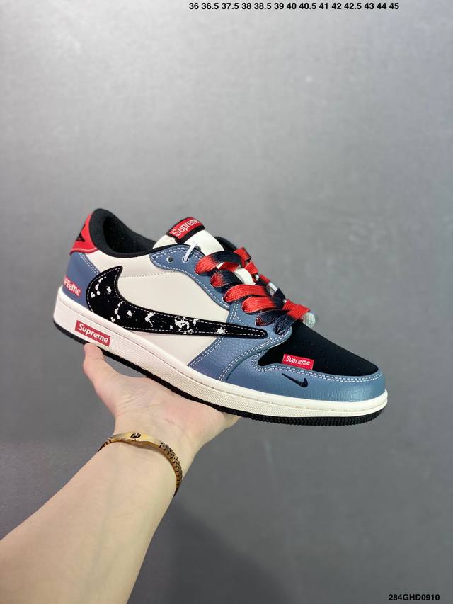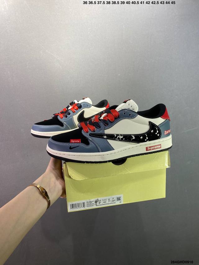 Corporate-level Nike Air Jordan 1 X Travis Scott Aj1 inverted hook Joe One inverted hook 'Diy' customized Nike low-top cultural basketball shoes