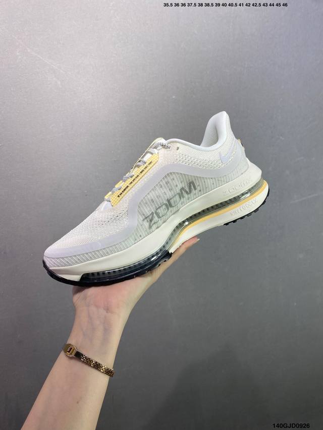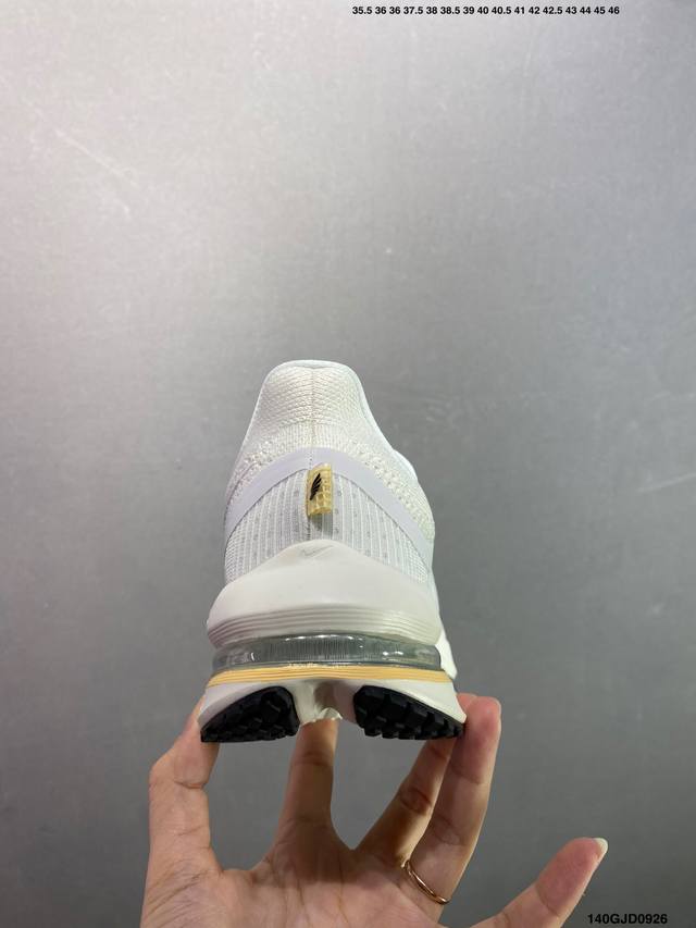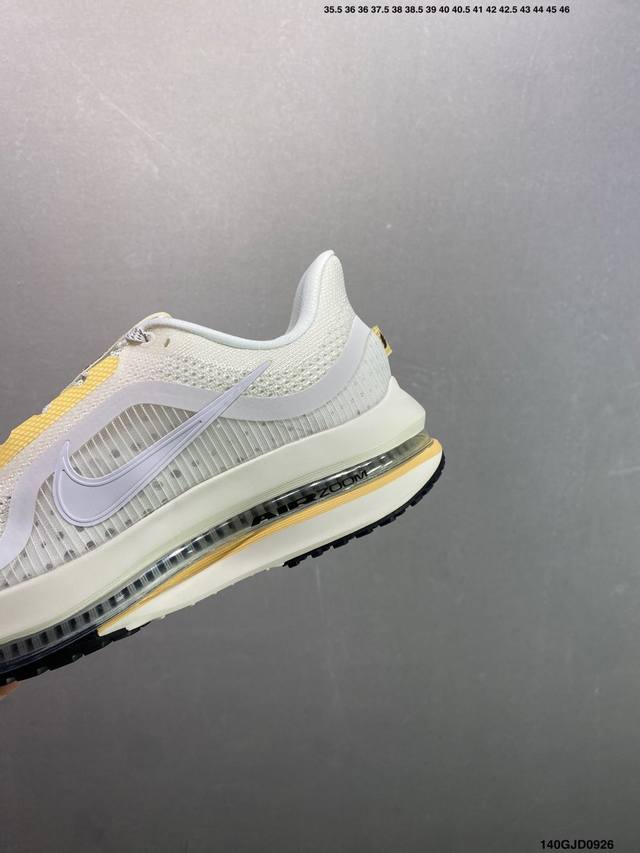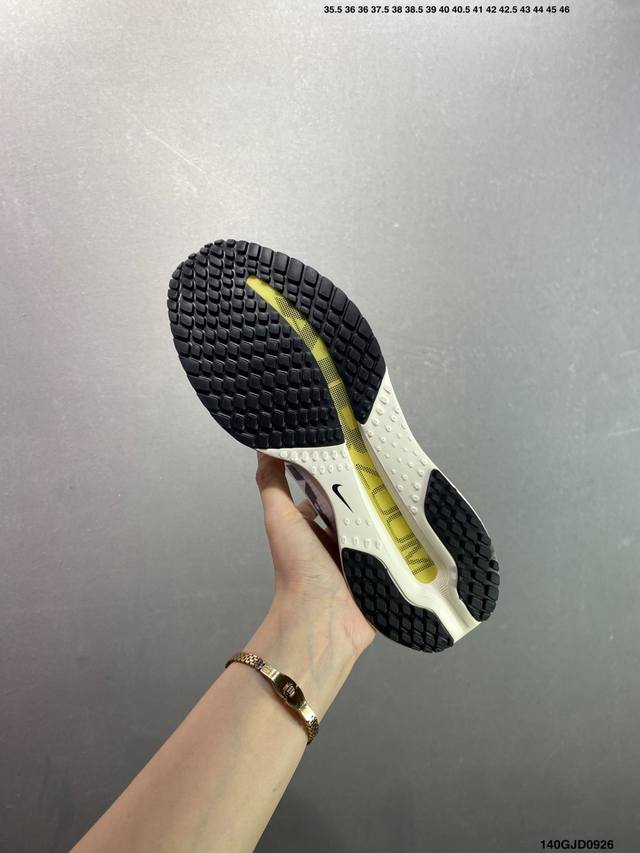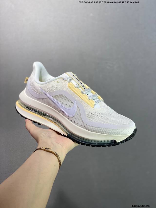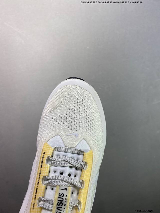 The full-palm visible Air Zoom appears for the first time in the Pegasus series, imitating the curve of the Vaporfly's carbon plate to enhance the smooth transition when running