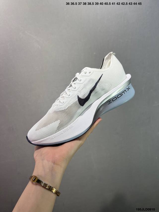 Corporate-level Nike Zoomx Vaporfly Next% 4 lightweight mesh breathable sneakers. This new generation of the most powerful running shoes has been comprehensively upgraded in both the upper and sole. The upper uses the new Vaporweave technology, a material similar to cicada wings. Item number: Hf6414-101. Sizes: 36-45. Code: 268Jld0910.