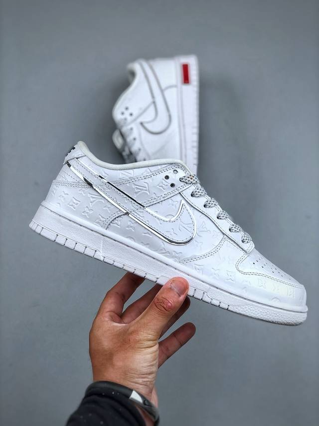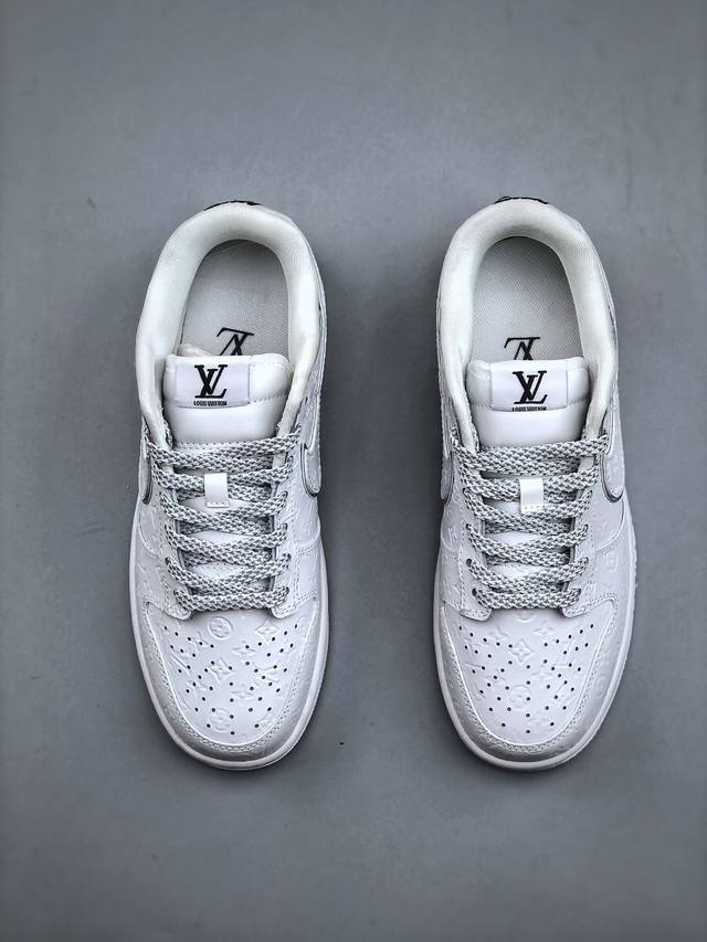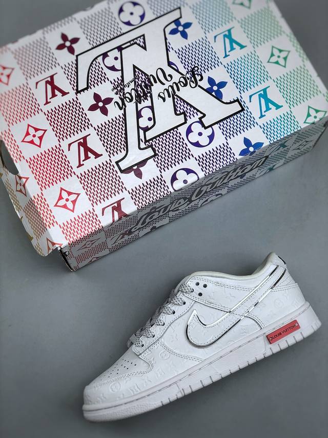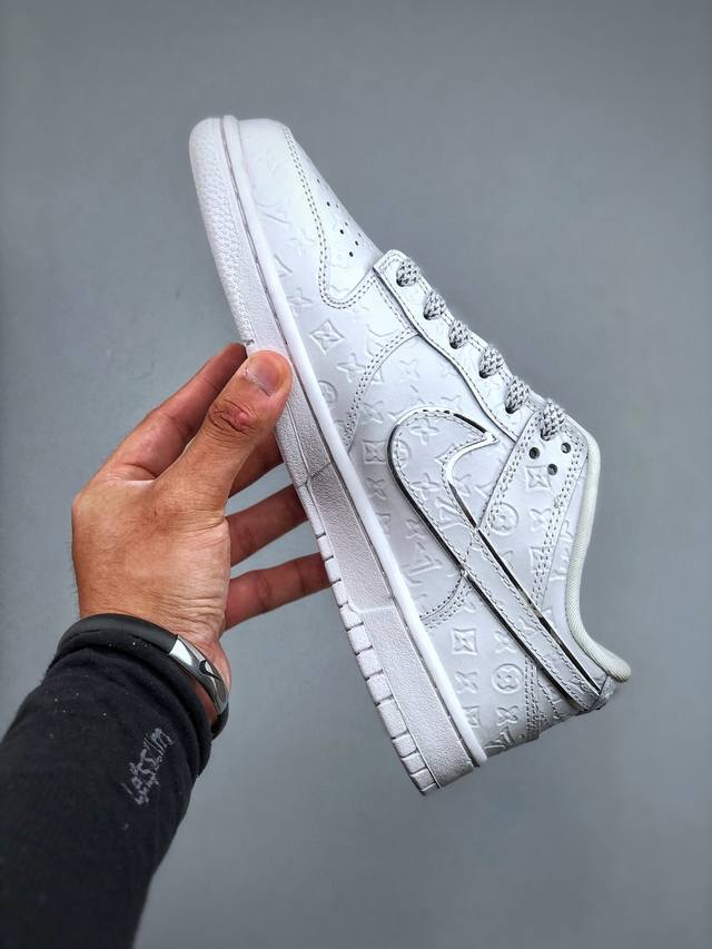 F version of the Nike SB Dunk Low Retro x Louis Vuitton, pure white with all-over star print. Highly recommended. Made from genuine top-grain material and featuring an exclusive, steam-distilled finish for a superior visual and tactile experience. Highly authentic quality, clean, embroidered leather, and impeccable detailing. Official model number: Ds6608-001. Sizes: 36-45 (half