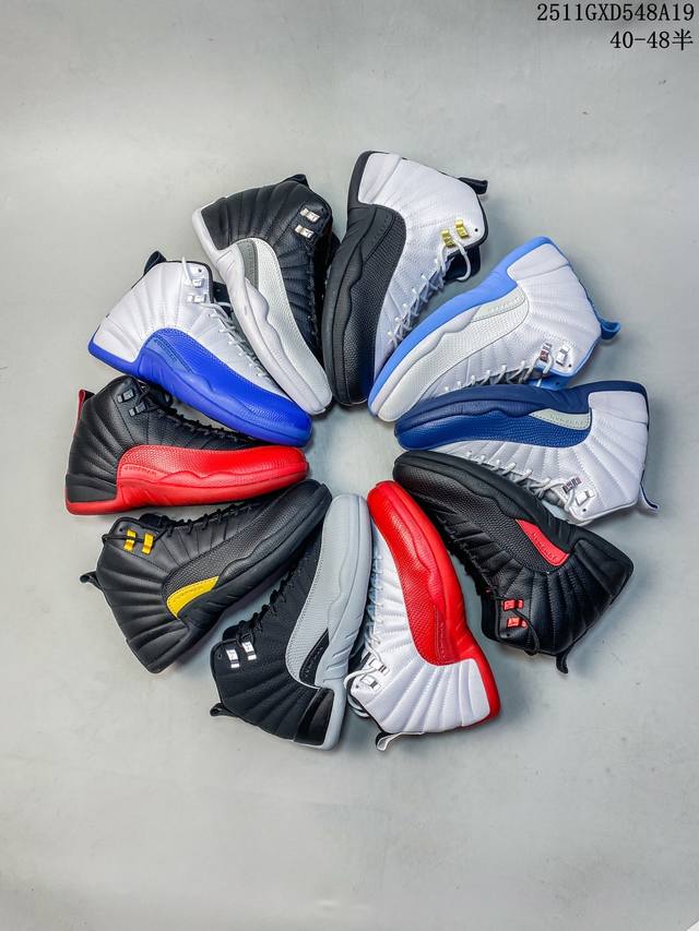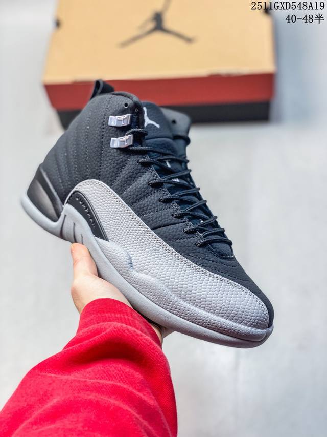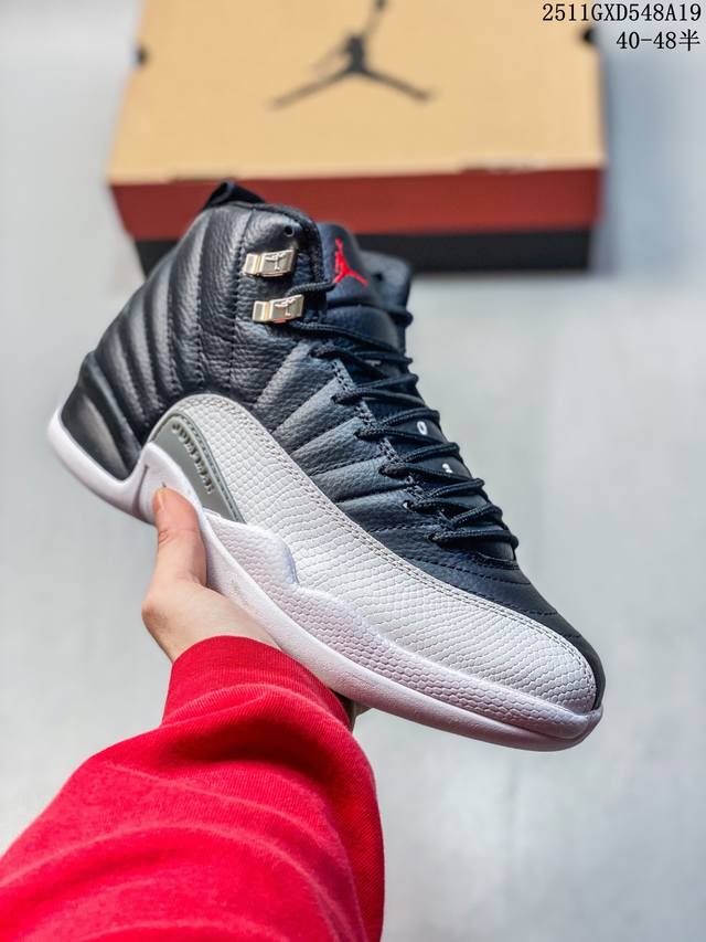Factory Grade Authentic Label Half Size Nike Air Jordan 12 Retro Basketball Shoes, Genuine Carbon Fiber with Air Cushion. This men's retro AJ12 men's athletic shoe recreates the acclaimed 1996 design by Tinker Hatfield, who pioneered the introduction of Zoom Air cushioning to the classic series. The upper uses premium materials to create a trendy look. The high-quality materials combined in the upper provide excellent durability, while the foam midsole features full-length Zoom Air cushioning for outstanding responsiveness. It also includes a carbon fiber stabilizer and a rubber outsole. Sizes: 40-48 (including half sizes). 11Gxd548A19