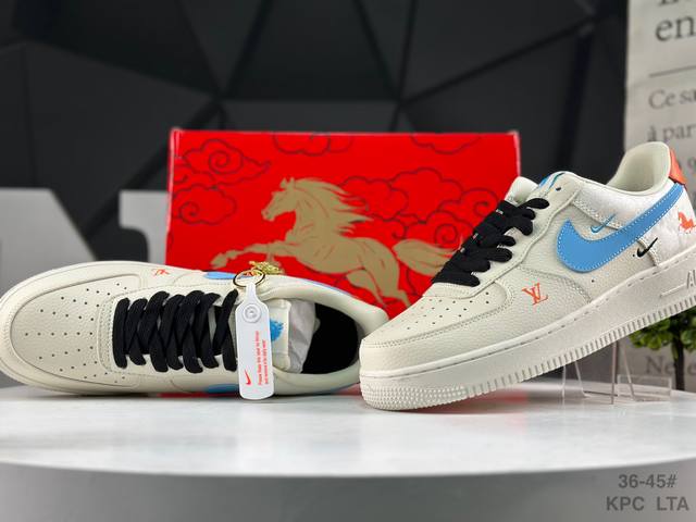Factory Grade Nike Air Force 1 '07 Low Low-Top Casual Sneakers, Year of the Horse Limited Edition. Product Code: Fv3694 100. Custom Leather, Custom Shoe Box, Original Last and Cardboard, Authentic Air Force Fit, Built-in Full-Length Air Cushion. Sizes: 36 36.5 37.5 38 38.5 39 40 40.5 41 42 42.5 43 44 44.5 45 Kpc Lta.
