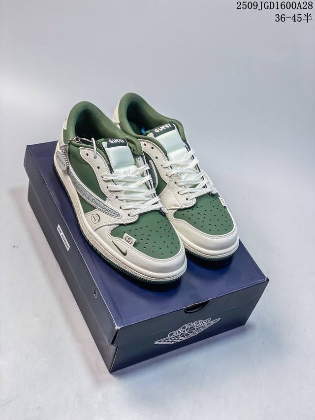Factory Grade Nike Air Jordan 1 X Travis Scott AJ1 Reverse Swoosh 'DIY' Custom Nike Low-Top Basketball Shoes (