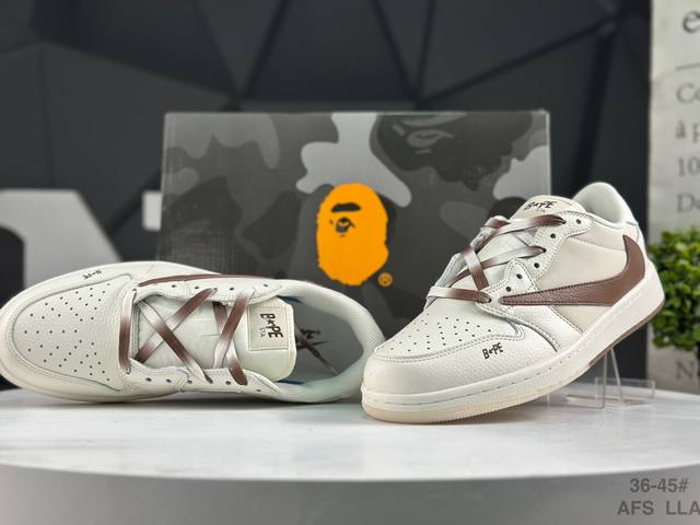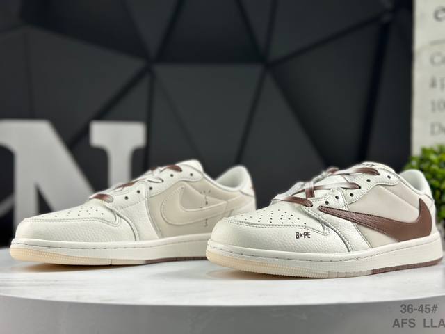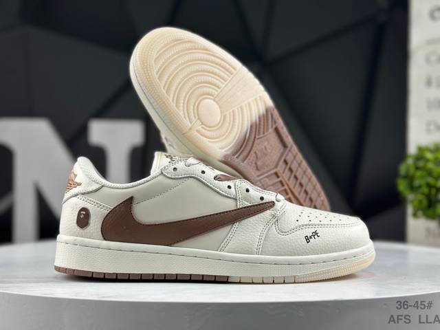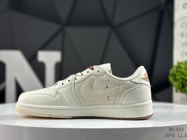 Factory Grade Nike AJ1 Travis Scott X Air Jordan 1 "Reverse Mocha" Low-Top Basketball Shoes with Half Sizes. Perfect quality and shipping details as shown in the pictures. The upper is neatly cut, the perforations are clean and tidy, and the overall cleanliness of the midsole stitching is excellent. Product Code: Dm7866 108 Sizes: 36, 36.5, 37, 38, 38.5, 39, 40, 40.5, 41, 42, 42.5, 43, 44, 45. AFS LLA