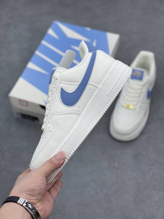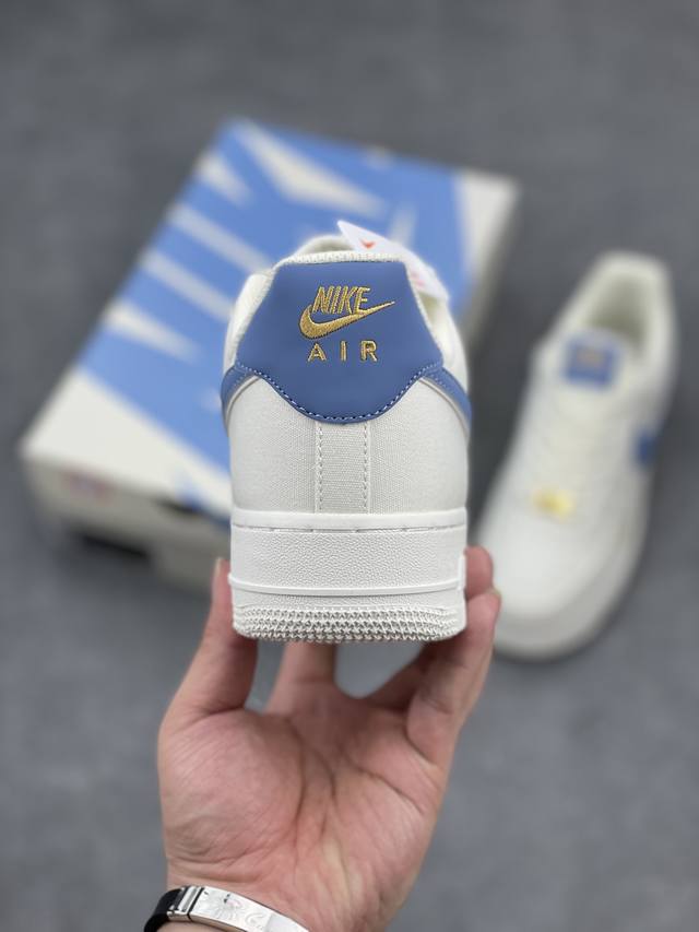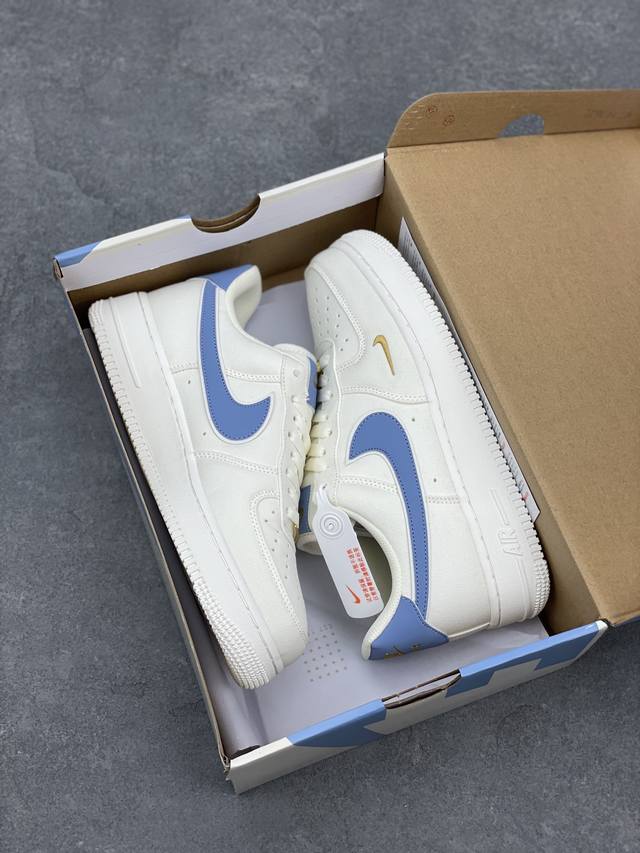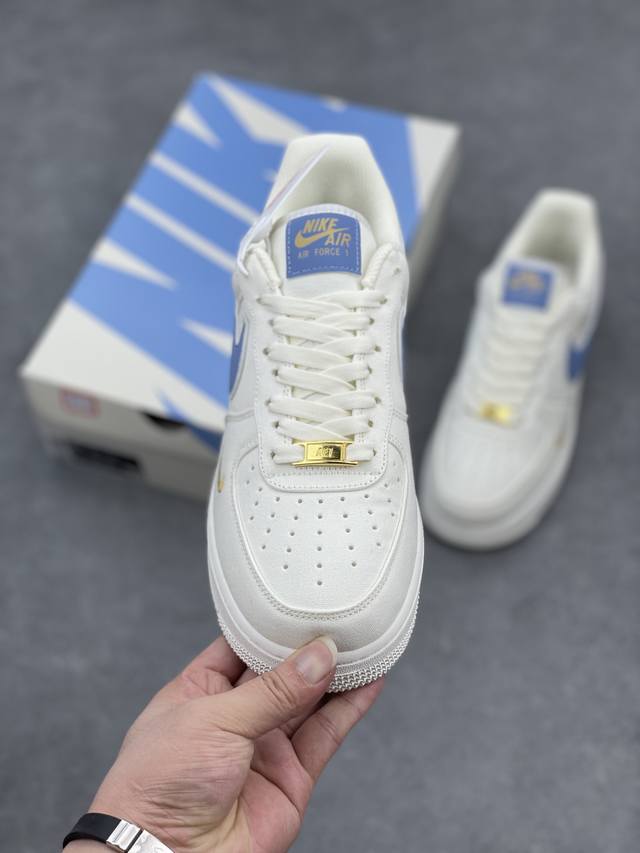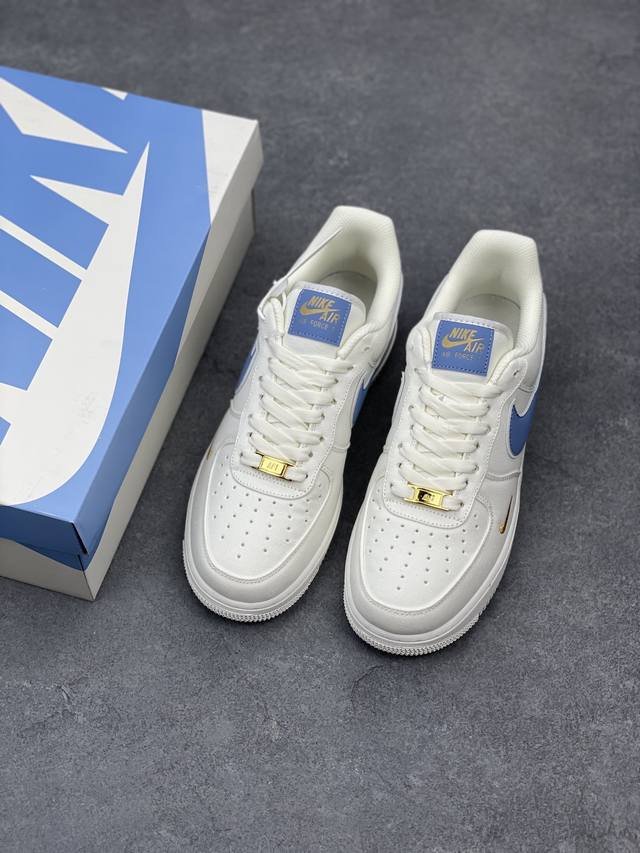 Official simultaneous release company-level Nike Air Force 1 '07 beige blue and gold cloth Air Force One low-top casual sneakers 3M colorful reflective imported cowhide cloth original last original cardboard pure Air Force version custom shoe box full-palm built-in full-palm air cushion original midsole steel stamped pull-up perfect