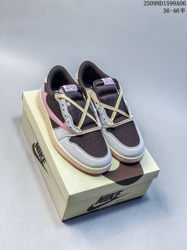 Genuine Nike Air Jordan 1 X Travis Scott Aj1 inverted hook Joe 1 inverted hook Nike low-top cultural basketball shoes