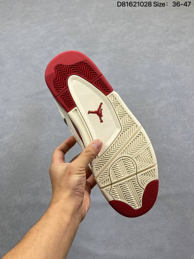 Genuine Nike Air Jordan 4 Retro, Michael Jordan AJ4 Mid-Top Retro Casual Sports Culture Basketball Shoes. Made with original factory materials, including super elastic TPU mesh, meticulous upper construction, steel stamp details on the midsole, and a windowed air cushion outsole. Upgraded with original last and data, using the same Nappa top-grain leather upper material. New sole mold, perfect condition, cleanliness, and paint finish. Product Code: Hv0823-108. Sizes: 36, 36.5, 37.5, 38, 38.5, 39, 40, 40.5, 41, 42, 42.5, 43, 44, 45, 46, 47.5. (D81621028)