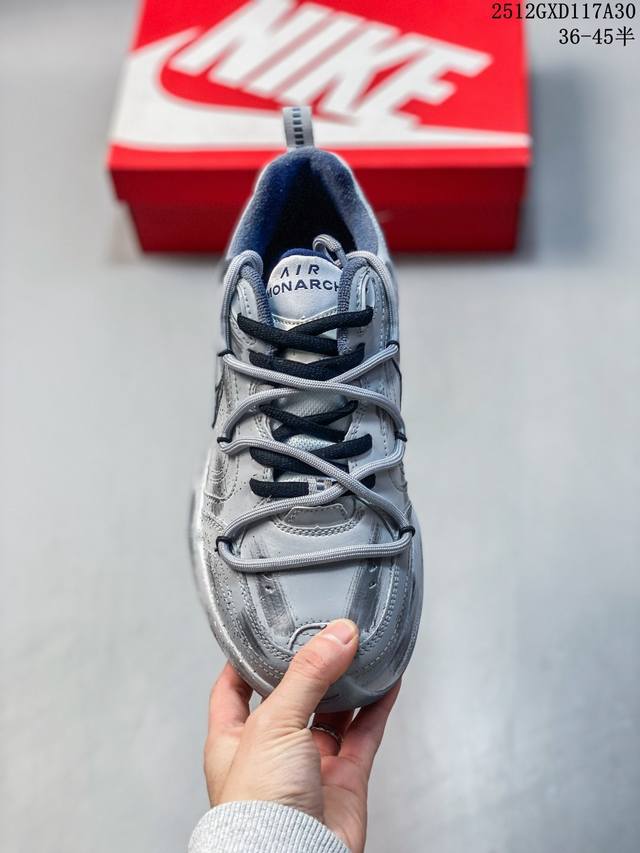 Hand-painted Custom: Nike Air Monarch Iv Leather Everyday Versatile Shock-absorbing and Anti-slip Low-top Casual Shoes. The upper is crafted from durable leather, making it easy to care for. The overall color scheme is predominantly white with blue accents, a simple and versatile design that goes with everything. It features full-length embedded Air cushioning for a superior shock absorption experience, and a platform sole for added height. Product Code: 415445-102 Sizes: 36 36.5 37.5 38 38.5 39 40 40.5 41 42 42.5 43 44 45 ID: 1033 46 12Gxd117A30