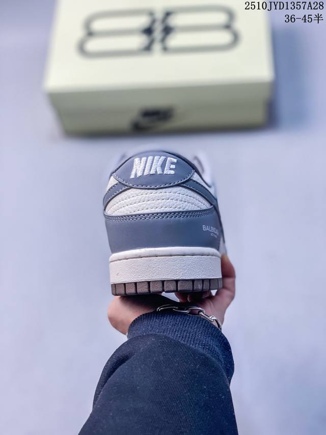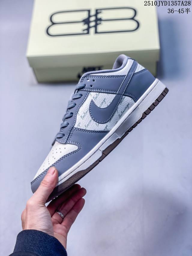 High-end custom Nike SB Dunk Low Balenciaga collaboration--- White, grey, and brown printed high-end custom low-top casual sneakers. Custom shoe box, factory original quality, super high cleanliness, clean leather cutting without any rough edges, perfect details. Item No.: Xd1588-205 Size: 36 36.5 37.5 38 38.5 39 40 40.5 41 42 42.5 43 44 44.5 45 10Jyd1357A28