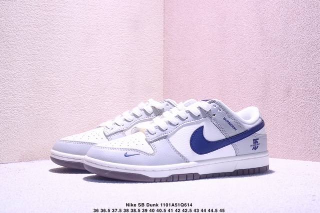 High-end custom Nike SB Dunk Low Burberry collaboration---Milk white and blue high-end custom low-top casual sneakers. Custom shoe box, factory original quality, super high cleanliness, clean leather cutting without any rough edges, perfect details. Item No.: Xd1588-219 Size: 36 36.5 37.5 38 38.5 39 40 40.5 41 42 42.5 43 44 44.5 45 Xm1101Q614