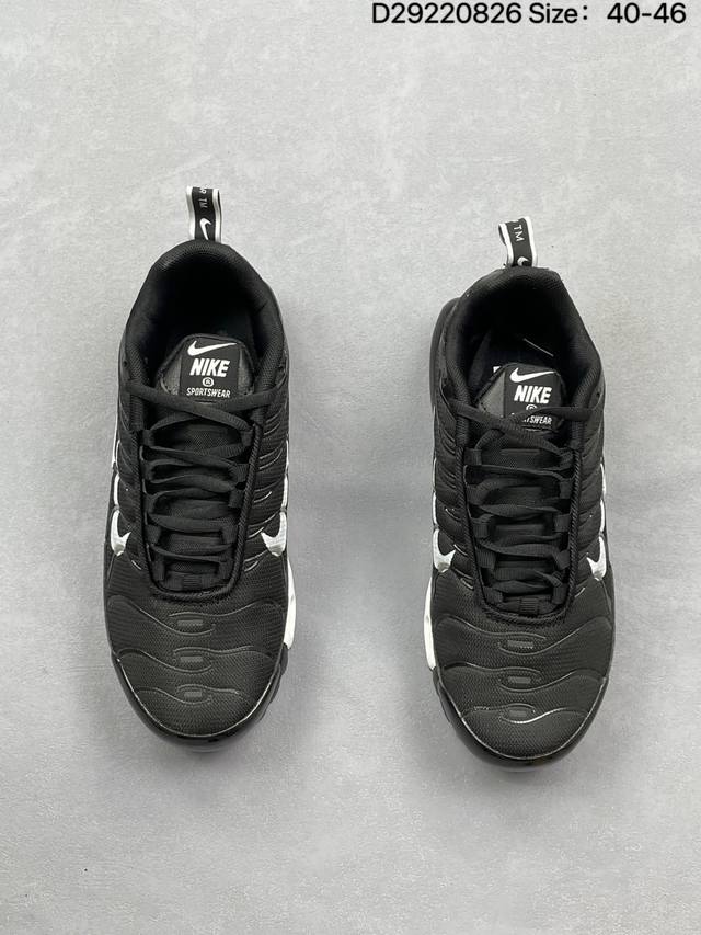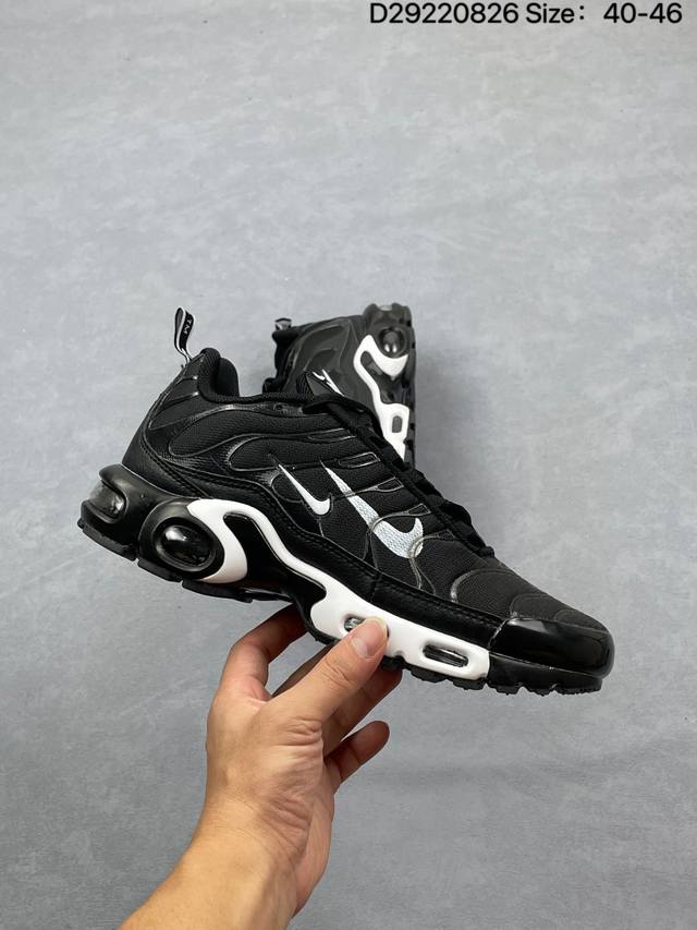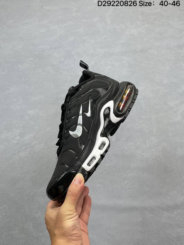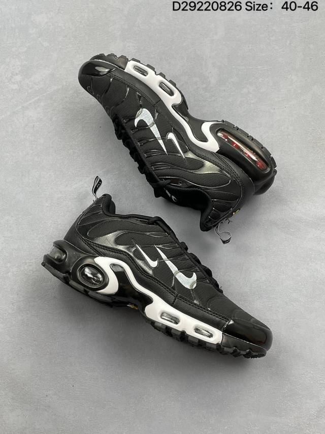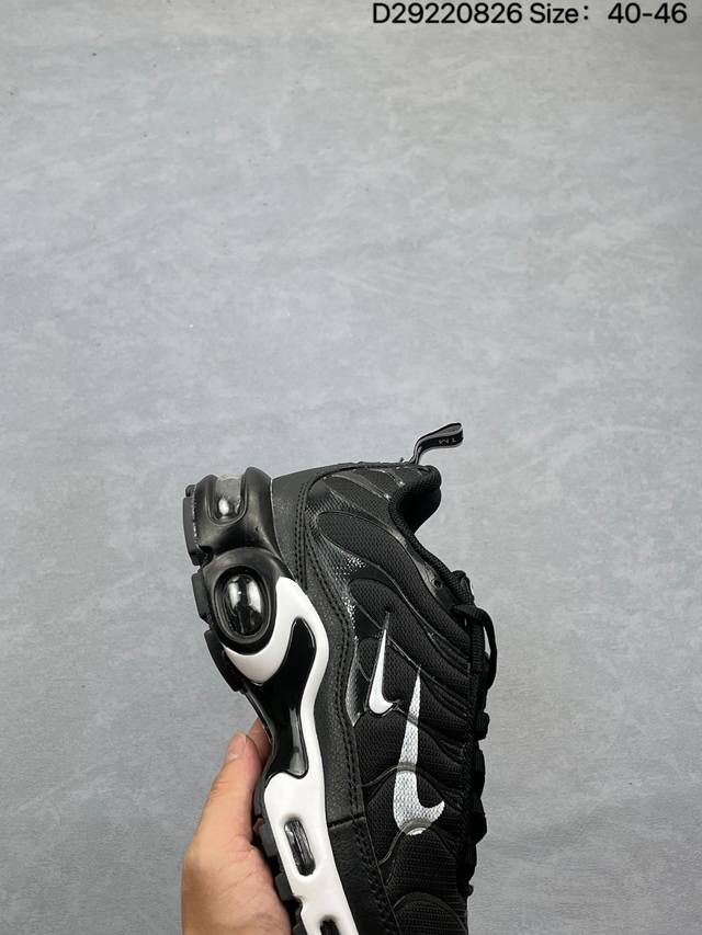 High-quality Nike women's casual shoes, air cushioned running shoes, Air Max Plus sneakers, the shape of the shoes is super cute! The upper is wrapped in canvas and fabric materials, ensuring lightness and breathability, more suitable for summer wear. The fishbone-shaped TPU on the side of the shoe and the giant Swoosh Logo surrounding the upper bring a strong visual impact. Finally, it is finished with a midsole made of granular Ceater Foam material, paired with a window-type Air Max air cushion, to ensure the foot feel while improving the overall design.