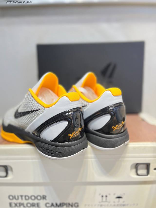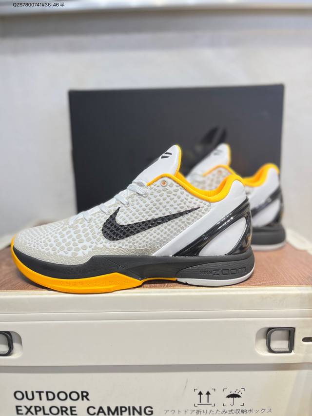 Kobe 6 Basketball Shoes Series Nike Kobe 6 Protro Vi Fashionable Casual Sports Basketball Shoes. The Kobe 6 Erica Var features a composite upper with a breathable mesh inner layer, Fly Wire technology in the mid-layer, and a polyurethane island structure on the outer layer to create a very realistic snake scale pattern. The midsole uses Zoom Air cushioning and Phylon midsole to ensure the shoe's shock absorption, making it softer and more comfortable. Product Code: Cw2190 Qzs7800741#36-46 Half