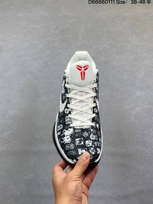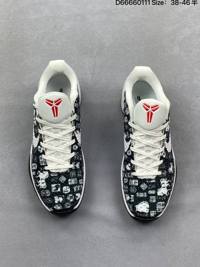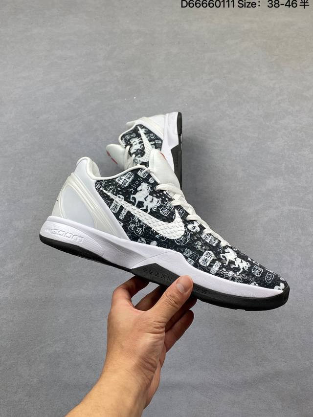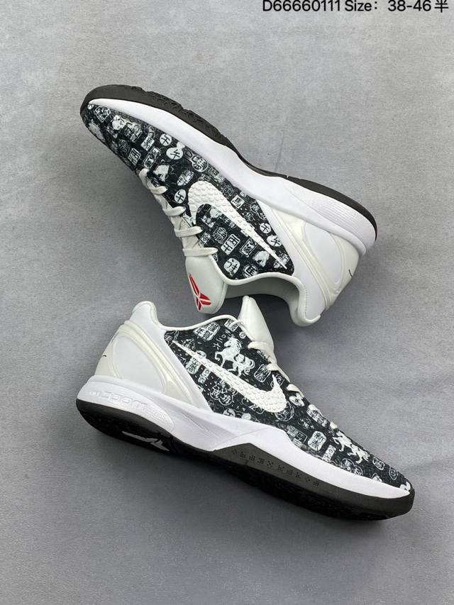 Kobe 6 Year of the Horse Limited Edition. Featuring a traditional Chinese aesthetic with vibrant red flame patterns wrapping around the upper, the black and white color scheme outlines a classic silhouette. The galloping horse motif on the side is a striking detail, perfectly blending traditional Chinese charm with the sharp lines of basketball shoes. Equipped with Nike Zoom Air technology, it provides excellent cushioning and responsiveness, excelling in both performance and design. Sizes 38-46 (half sizes) are available in stock (style code Cw2190-012). Whether for collectors or casual wear, this is a treasure in the Kobe series! Style Code: Cw2190 Size: See image Code: D66660111