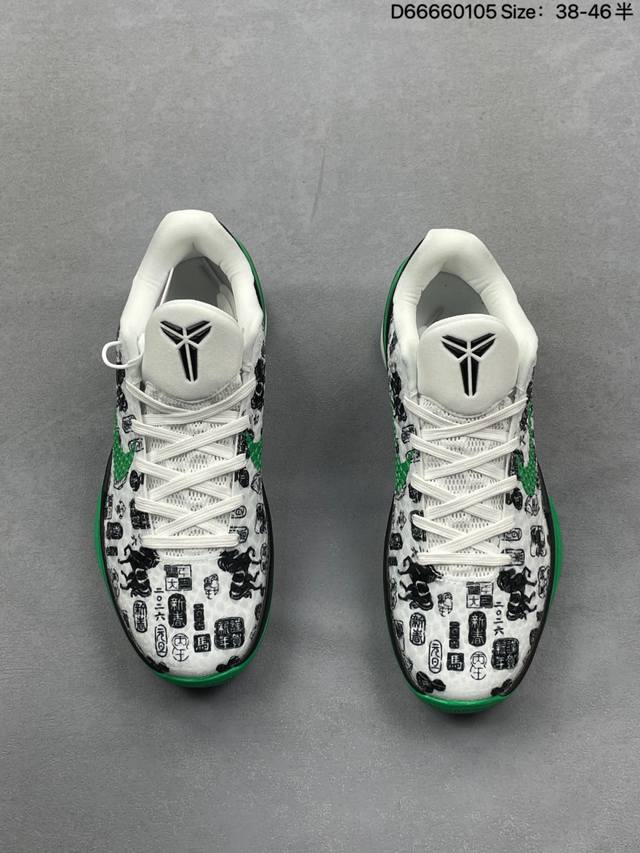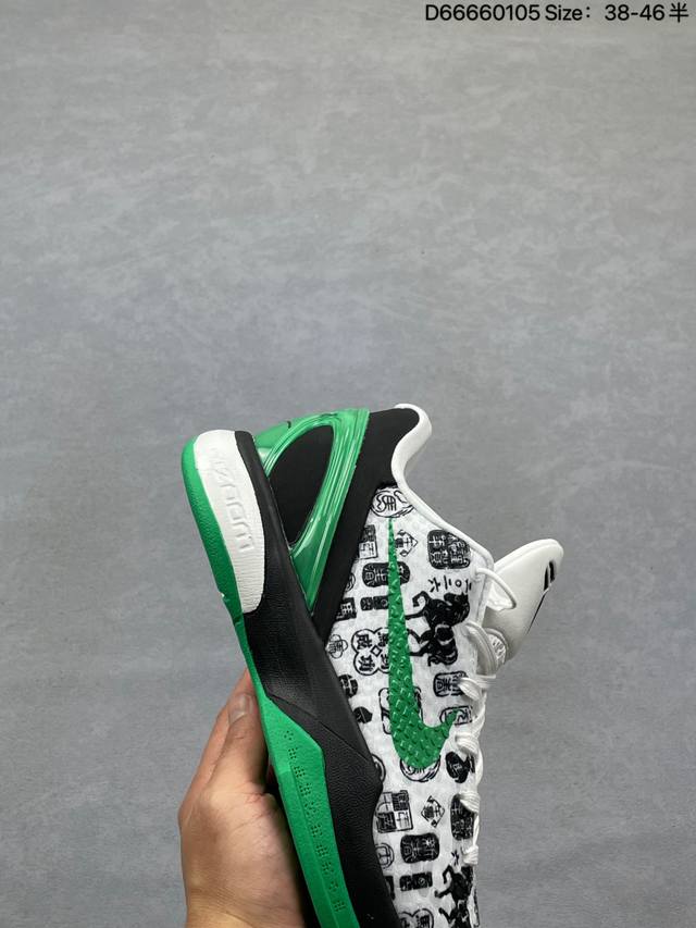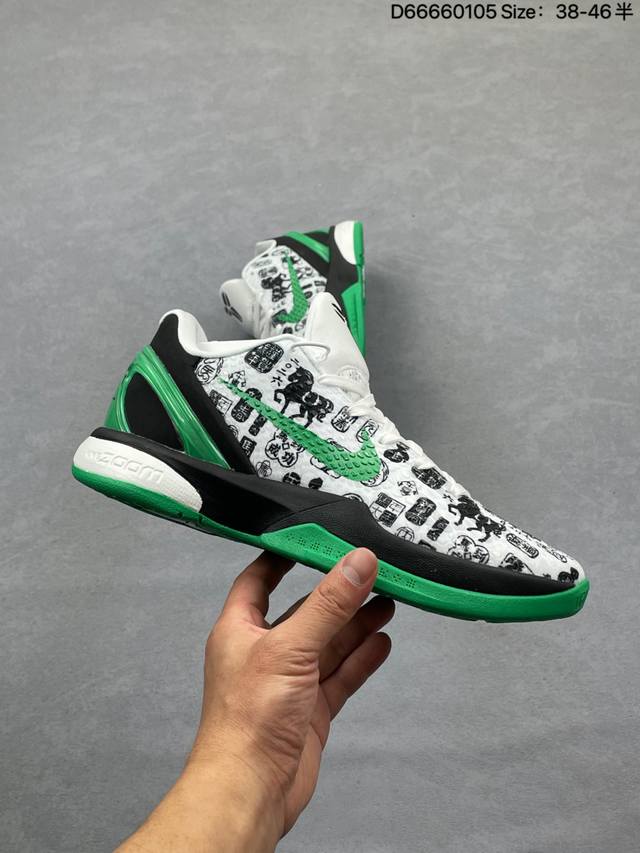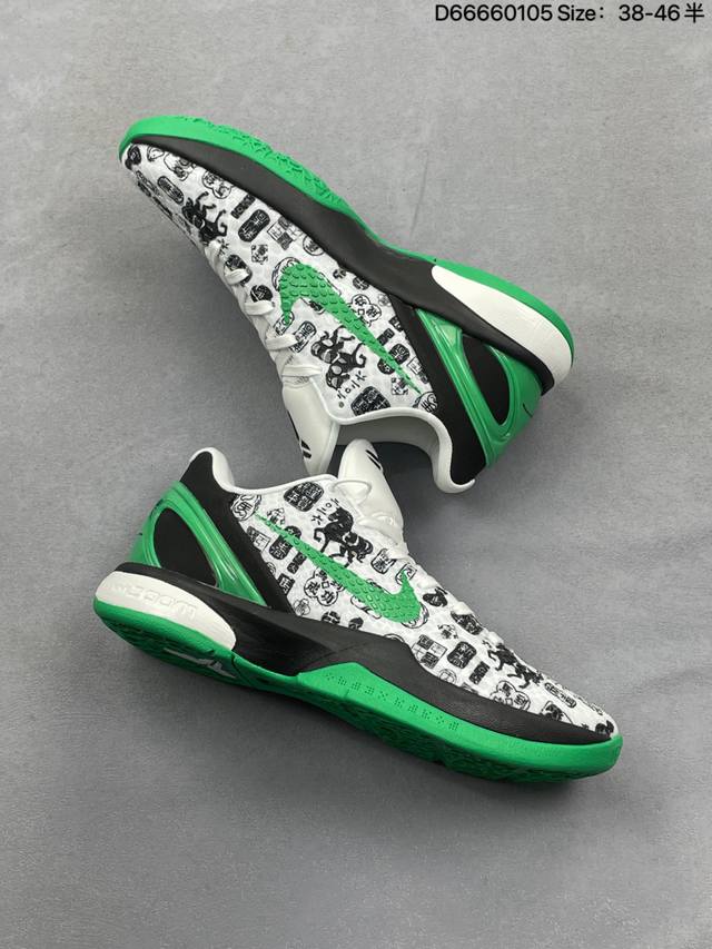 Kobe 6 Year of the Horse Limited Edition. The shoe features a traditional Chinese aesthetic with a vibrant red flame pattern wrapping around the upper. Black and white color blocking outlines the classic silhouette, while the galloping horse motif on the side is a striking detail, perfectly blending traditional Chinese style with the sharp lines of basketball shoes. Equipped with Nike Zoom Air technology, it provides excellent cushioning and responsiveness, excelling in both performance and design. Sizes 38-46 (half sizes) are available in stock (style code Cw2190-012). Whether for collectors or casual wear, this is a treasure in the Kobe series! Style Code: Cw2190 Size: See image Code: D66660105