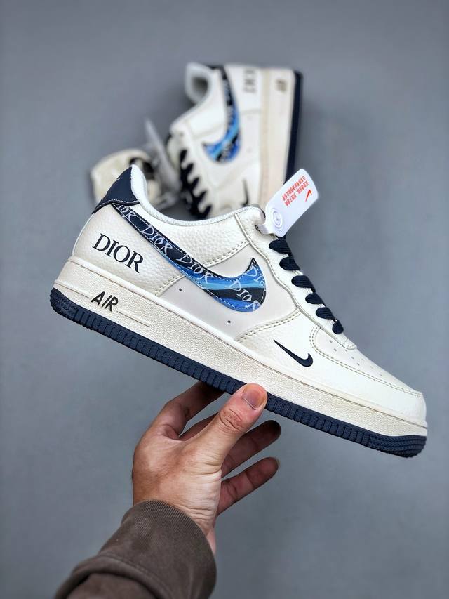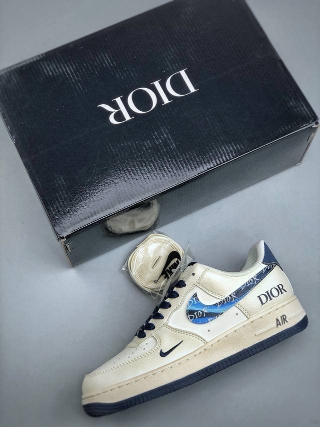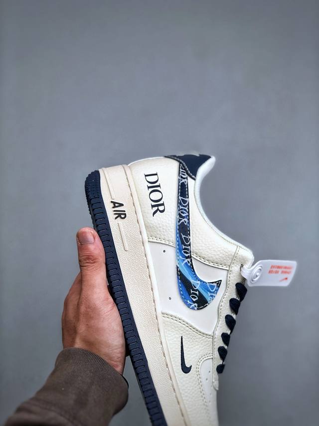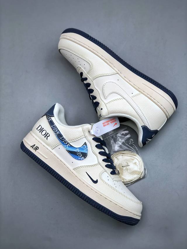 KP version, limited overseas release! Factory-grade Nike Air Force 1 '07 Low "Dior Collaboration Blue Iridescent Swoosh" low-top sneakers/casual shoes with intricate stitching and folded edges. Original last, original cardboard, original shoe box, custom hardware accessories, built-in full-length Air cushioning, original sole. Product code: Xs1958-569. Sizes: 36-45. Half-price.