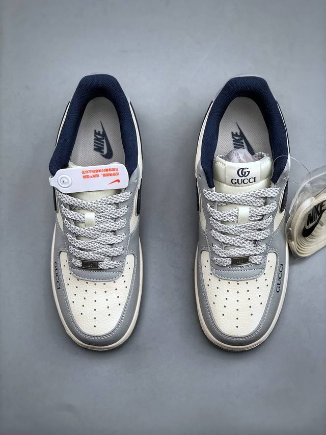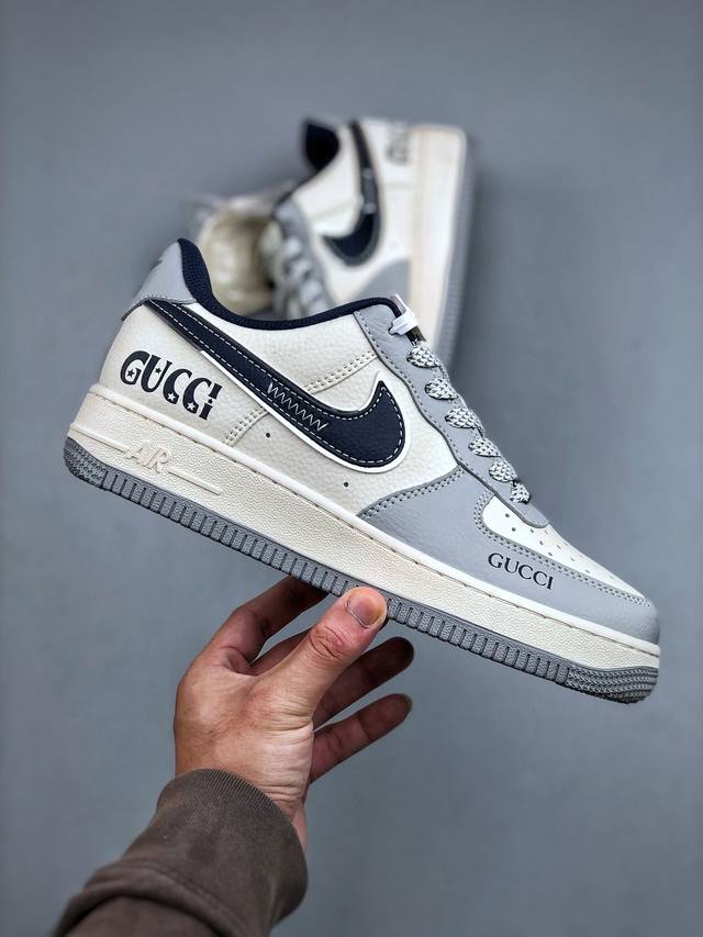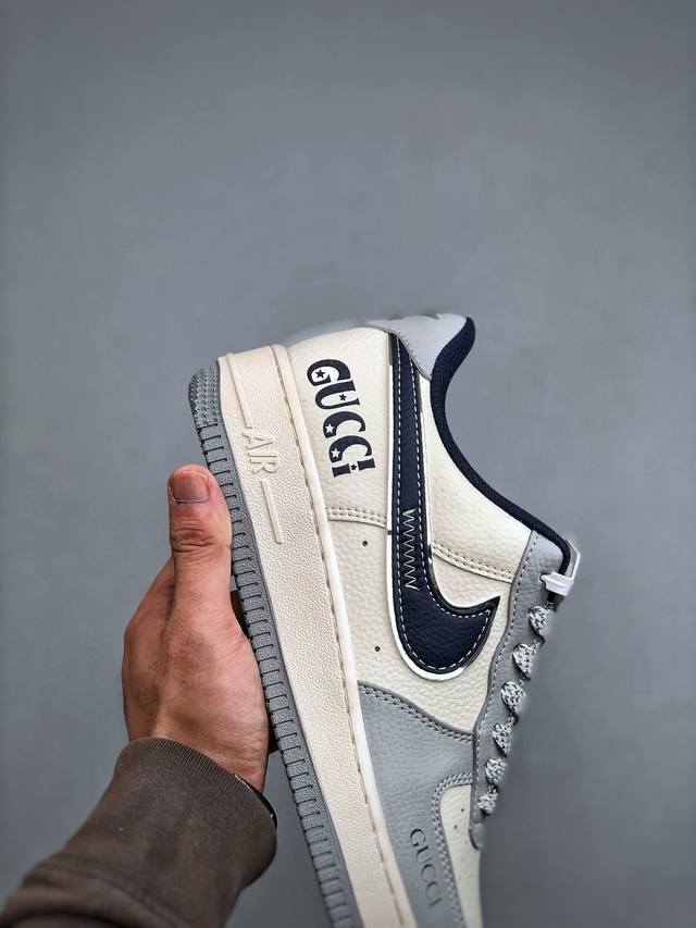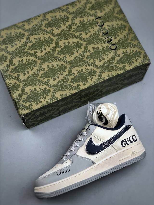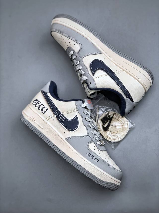 KP version, limited overseas release! Factory-grade Nike Air Force 1 '07 Low "Gucci Collaboration Grey-Blue Swoosh" low-top sneakers/casual shoes with intricate folded edge stitching. Original last, original cardboard, original shoe box, custom hardware accessories, built-in full-length Air cushioning, original sole. Product code: Xs1958-543. Sizes: 36-45. Half-price.