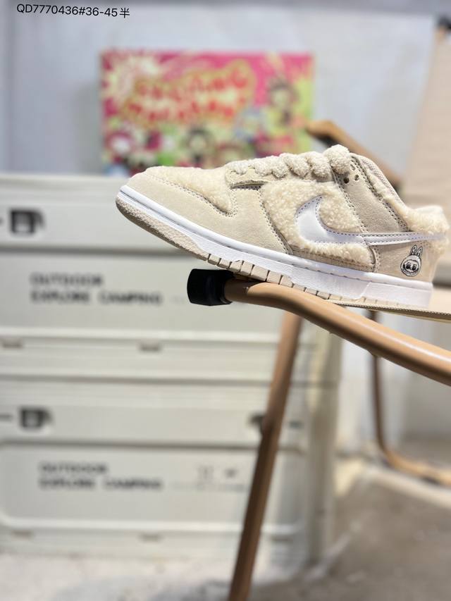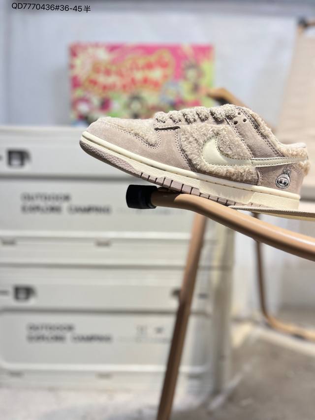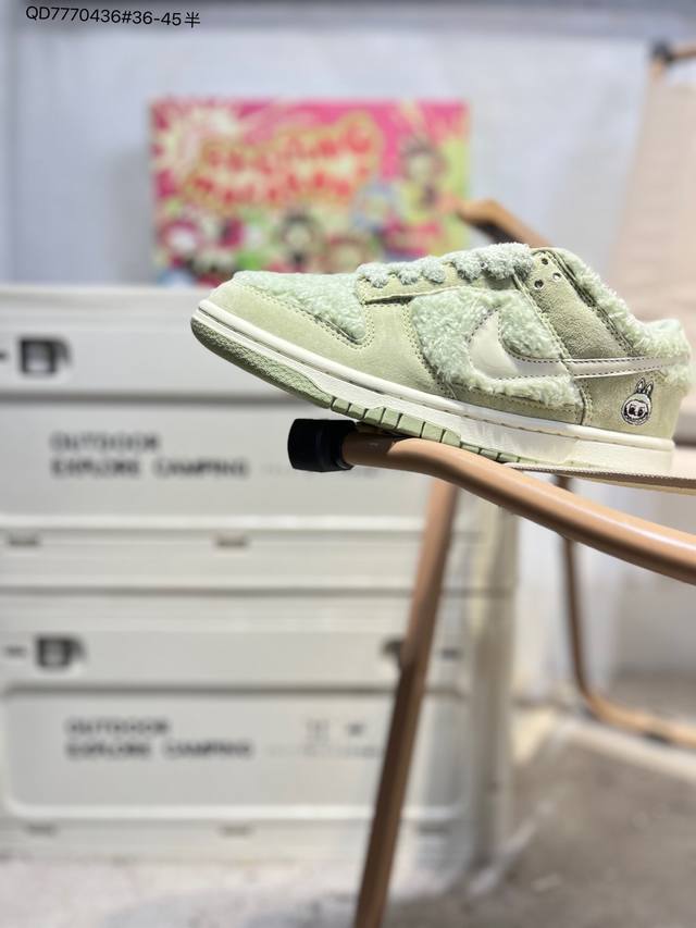 Labubu X Nike SB Dunk Low, a highly recommended new colorway from a major manufacturer. Made with original top-grain materials and a unique design using steam distillation, resulting in a superior visual and tactile experience. High-quality factory-made leather with impeccable cleanliness. Features include electro-embroidery, clean leather cutting with no rough edges, and perfect details. (GB6675 Qd7770436# 36-45.5)