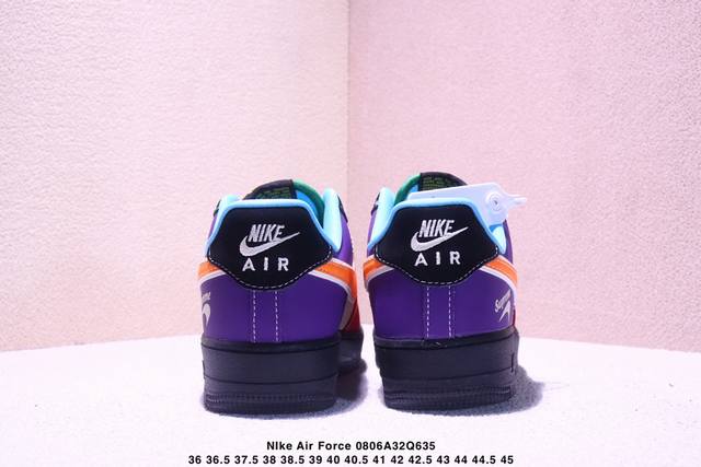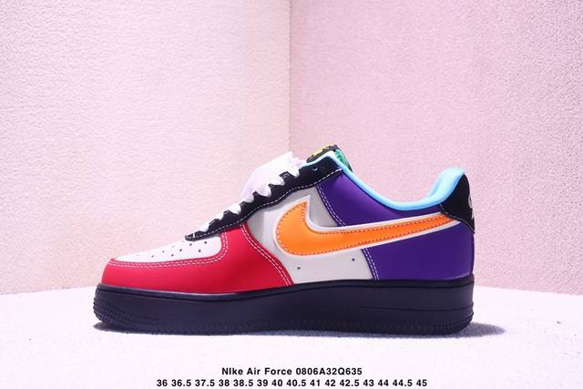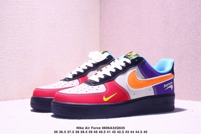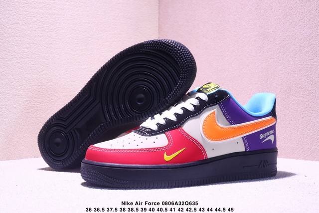 Limited edition overseas sale! Corporate-grade Nike Air Force 1 '07 Low "Supreme Joint Red, Yellow and Purple" Air Force One low-top sneakers and casual shoes. The hem sewing process is difficult. Original last, original cardboard, original shoe box, customized hardware accessories, built-in full-palm air cushion, original sole