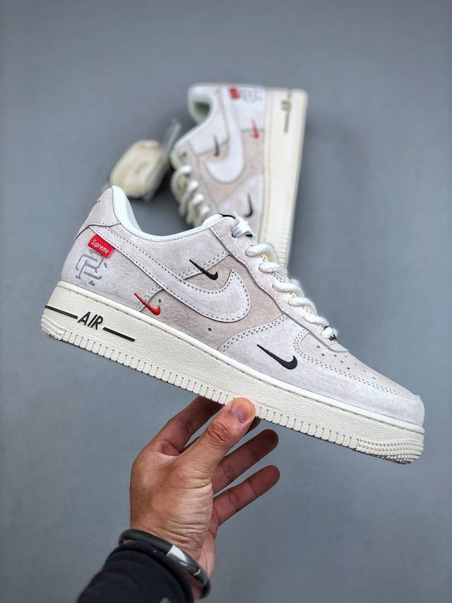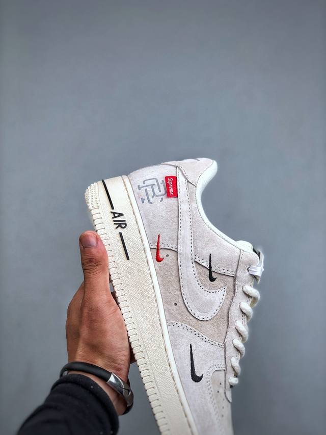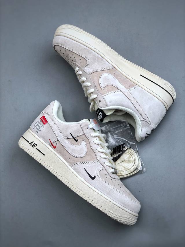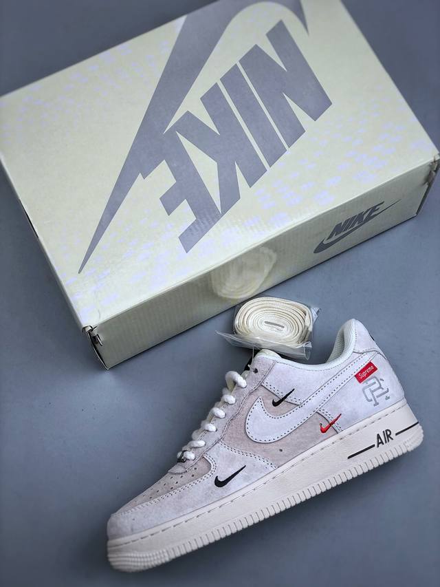 Limited edition overseas sale! Corporate-grade Nike Air Force 1 '07 Low "Supreme Champion Collaboration - Off-White Small Three Swoosh" Air Force One low-top sneakers and casual shoes. Hemming and sewing are difficult. Original last, original cardboard, original shoe box, custom hardware, built-in full-length air cushion, original sole