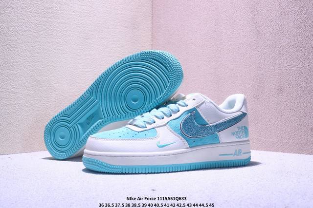 Limited Overseas Release! Company Grade Nike Air Force 1 '07 Low "The North Face Collaboration - Starry Sky Blue Swoosh White and Blue Colorway" Air Force 1 Low-Top Sneakers/Casual Shoes with Difficult-to-Craftsmanship: Original Last, Original Cardboard, Original Shoe Box, Custom Hardware Accessories, Built-in Full-Length Air Cushion, Original Sole. Product Code: Qy6818-529. Sizes: 36, 36.5, 37.5, 38, 38.5, 39, 40, 40.5, 41, 42, 42.5, 43, 44, 44.5, 45. Xm1115Q633