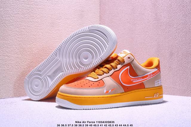Limited Overseas Release! Factory Grade Nike Air Force 1 '07 Low "Balenciaga Collaboration Vibrant Orange" Air Force 1 Low-Top Sneakers/Casual Shoes. Features include: original last, original cardboard, original shoe box, custom hardware accessories, built-in full-length air cushion, and original sole. Product Code: Sy1388-002. Sizes: 36, 36.5, 37.5, 38, 38.5, 39, 40, 40.5, 41, 42, 42.5, 43, 44, 44.5, 45. Xm1103Q635