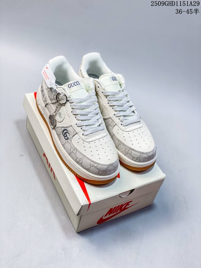 Limited Overseas Release! Factory Grade Nike Air Force 1 '07 Low "Gucci Collaboration Smoke Grey Gum" Air Force 1 Low-Top Sneakers/Casual Shoes. Features include: original last, original cardboard, original shoe box, custom hardware accessories, built-in full-length air cushion, and original sole. Product Code: Dk0188-084. Sizes: 36, 36.5, 37.5, 38, 38.5, 39, 40, 40.5, 41, 42, 42.5, 43, 44, 44.5, 45. 09Ghd1151A29