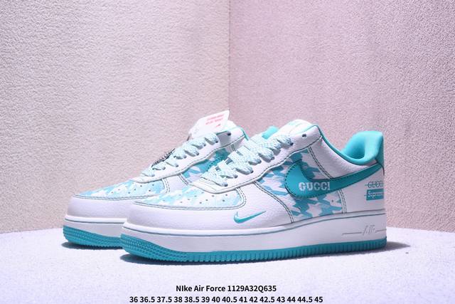 Limited Overseas Release! Factory Grade Nike Air Force 1 '07 Low "Gucci Collaboration Mint Green" Air Force 1 Low-Top Sneakers/Casual Shoes. Features include: original last, original cardboard, original shoe box, custom hardware accessories, built-in full-length air cushion, and original sole. Product Code: XL1979-124. Sizes: 36, 36.5, 37.5, 38, 38.5, 39, 40, 40.5, 41, 42, 42.5, 43, 44, 44.5, 45. Xm1129Q635