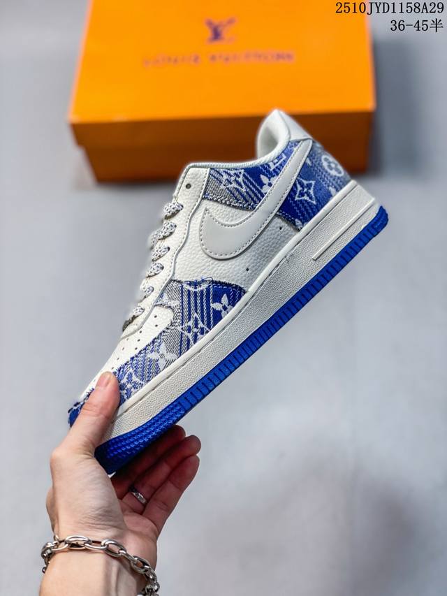 Limited Overseas Release! Factory Grade Nike Air Force 1 '07 Low "LV Collaboration Gradient Denim" Low-Top Sneakers/Casual Shoes with Difficult-to-Craftsmanship: Folded Edge Stitching, Original Last, Original Cardboard, Original Shoe Box, Custom Hardware Accessories, Built-in Full-Length Air Cushion, Original Sole. Product Code: Xs1958-586. Sizes: 36, 36.5, 37.5, 38, 38.5, 39, 40, 40.5, 41, 42, 42.5, 43, 44, 44.5, 45. (Item number: 10Jyd1158A29)