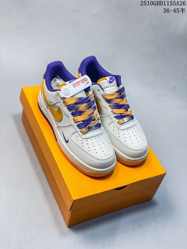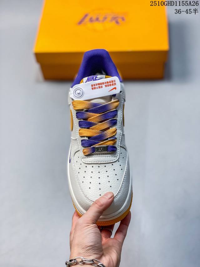 Limited Overseas Release! Factory Grade Nike Air Force 1 '07 Low "NBA Collaboration Lakers" Low-Top Sneakers/Casual Shoes with Difficult-to-Craftsmanship: Original Last, Original Cardboard, Original Shoe Box, Custom Hardware Accessories, Built-in Full-Length Air Cushion, Original Outsole. Product Code: Cs5288-006. Sizes: 36, 36.5, 37.5, 38, 38.5, 39, 40, 40.5, 41, 42, 42.5, 43, 44, 44.5, 45. (Item number: 10Ghd1154A26)