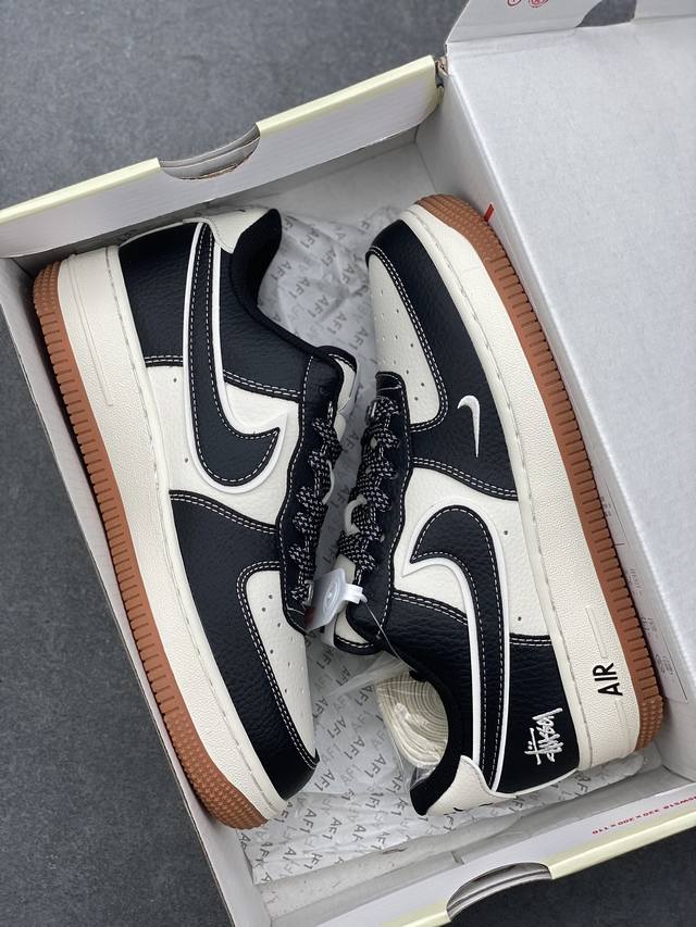 Limited Overseas Release! Factory Grade Nike Air Force 1 '07 Low "Stusic Collaboration - Raw Rubber Black Marking" Low-Top Sneakers/Casual Shoes with Difficult-to-Craftsmanship: Folded Edge Stitching, Original Last, Original Cardboard, Original Shoe Box, Custom Hardware Accessories, Built-in Full-Length Air Cushion, Original Outsole. Product Code: Xz9688-001. Sizes: 36, 36.5, 37.5, 38, 38.5, 39, 40, 40.5, 41, 42, 42.5, 43, 44, 44.5, 45.