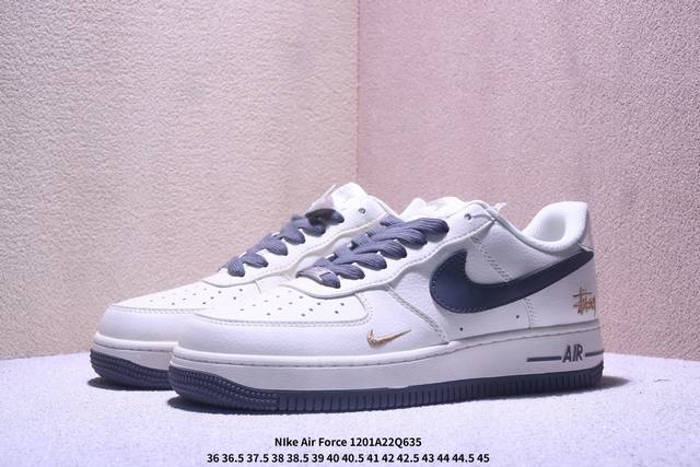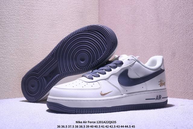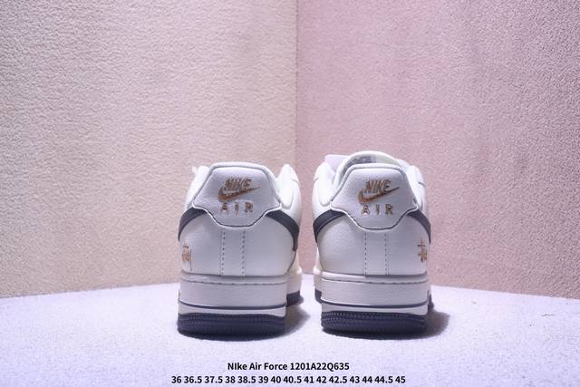 Limited Overseas Release! Factory Grade Nike Air Force 1 '07 Low "Stusic Collaboration - Dark Grey with Gold Label" Low-Top Sneakers/Casual Shoes with Difficult-to-Craftsmanship: Folded Edge Stitching, Original Last, Original Cardboard, Original Shoe Box, Custom Hardware Accessories, Built-in Full-Length Air Cushion, Original Sole. Product Code: Xx3168-223. Sizes: 36, 36.5, 37.5, 38, 38.5, 39, 40, 40.5, 41, 42, 42.5, 43, 44, 44.5, 45.