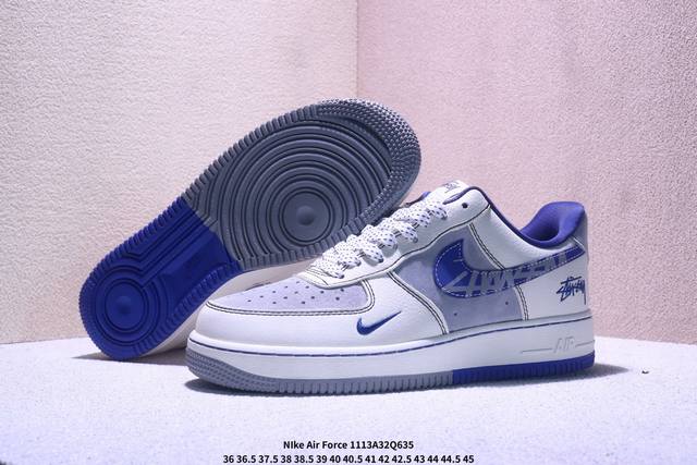 Limited Overseas Release! Factory Grade Nike Air Force 1 '07 Low "Stussy Collaboration Double-Pattern Blue Swoosh" Air Force 1 Low-Top Sneakers/Casual Shoes. Features include: original last, original cardboard, original shoe box, custom hardware accessories, built-in full-length air cushion, and original sole. Product Code: XL1979-123 Sizes: 36, 36.5, 37.5, 38, 38.5, 39, 40, 40.5, 41, 42, 42.5, 43, 44, 44.5, 45. Xm1113Q635