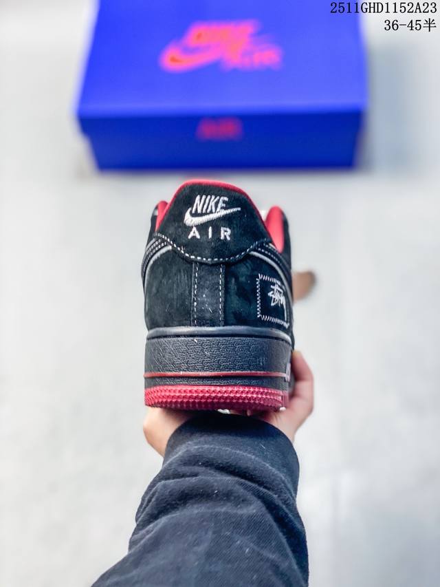 Limited Overseas Release! Factory Grade Nike Air Force 1 '07 Low "Stussy Collaboration Matte Black" Low-Top Sneakers/Casual Shoes with Difficult-to-Craftsmanship: Folded Edge Stitching, Original Last, Original Cardboard, Original Shoe Box, Custom Hardware Accessories, Built-in Full-Length Air Cushion, Original Sole. Product Code: Sy1388-009. Sizes: 36, 36.5, 37.5, 38, 38.5, 39, 40, 40.5, 41, 42, 42.5, 43, 44, 44.5, 45. (Item number: 11Ghd1252A23)