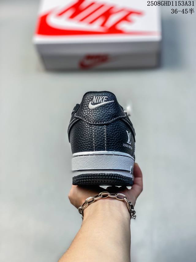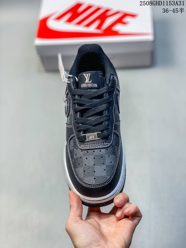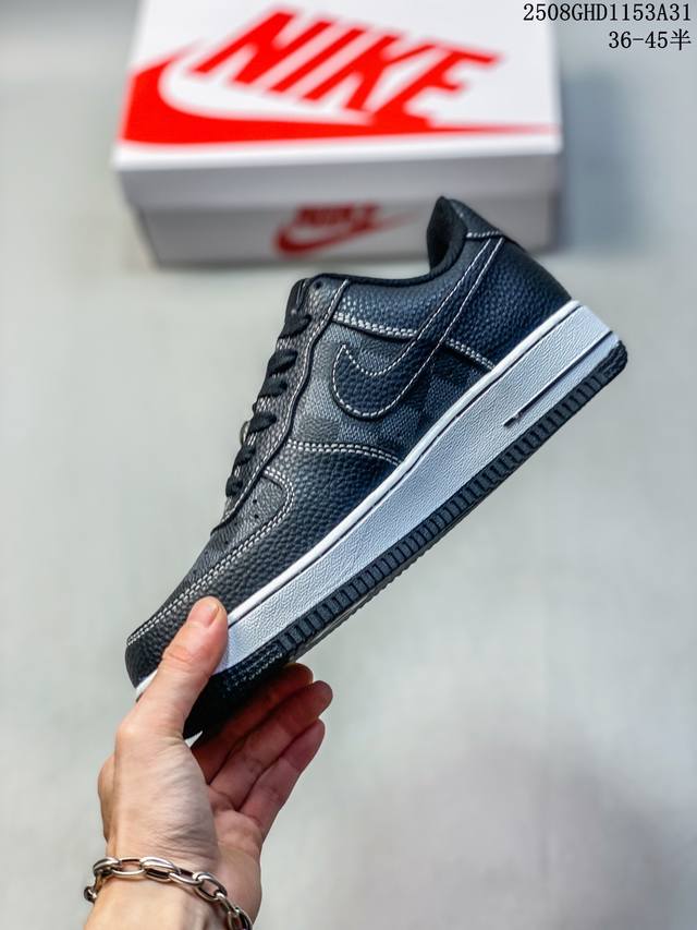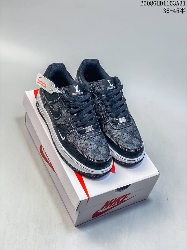 Limited overseas sale! Company-level Nike Air Force 1 '07 Low "LV co-branded checkered black lychee pattern" Air Force One low-top sports shoes and casual shoes. The hem sewing process is difficult. Original last, original cardboard, original shoe box, customized hardware accessories, built-in full-palm air cushion, original sole