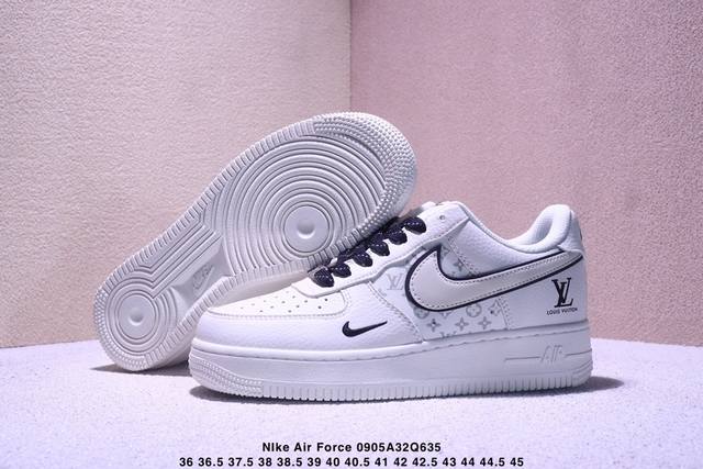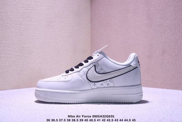 Limited overseas sale! Company-level Nike Air Force 1 '07 Low "LV co-branded off-white small black hook" Air Force One low-top sports shoes casual shoes with difficult hemming and sewing process. Original last, original cardboard, original shoe box, customized hardware accessories, built-in full-palm air cushion, original sole