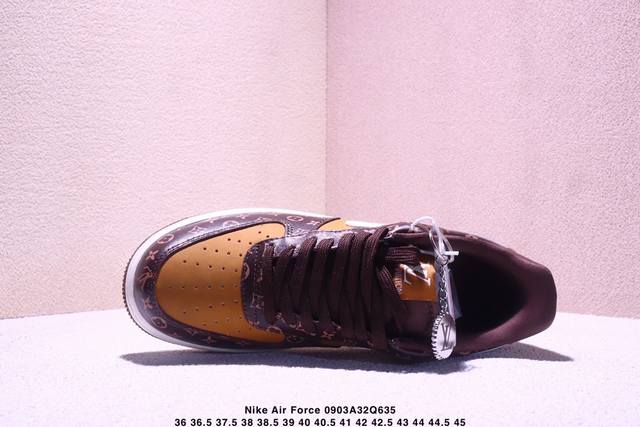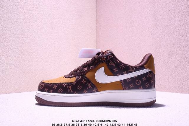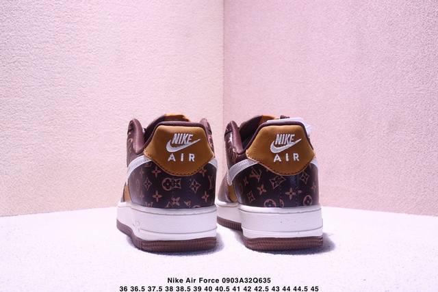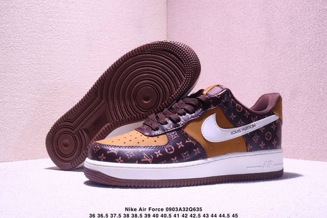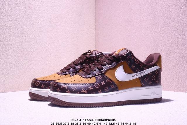 Limited overseas sale! Company-level Nike Air Force 1 '07 Low "LV Joint Classic Brown Pattern" Air Force One low-top sports shoes and casual shoes. The hem sewing process is difficult. Original last, original cardboard, original shoe box, customized hardware accessories, built-in full-palm air cushion, original sole
