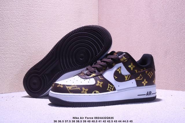 Limited overseas sale! Company-level Nike Air Force 1 '07 Low "Lv Joint Classic White and Brown" Air Force One low-top sports shoes and casual shoes. The hem sewing process is difficult. Original last, original cardboard, original shoe box, customized hardware accessories, built-in full-palm air cushion, original sole
