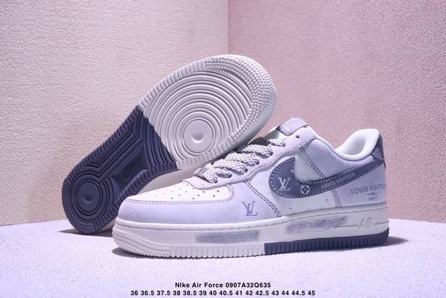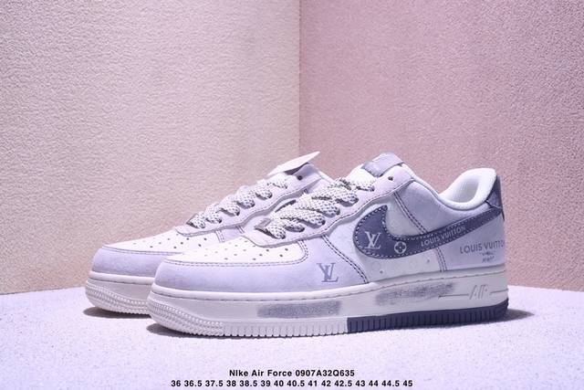 Limited overseas sale! Company-level Nike Air Force 1 '07 Low "Lv Joint Double Gray Graffiti" Air Force One low-top sports shoes casual shoes with difficult hemming and sewing process. Original last, original cardboard, original shoe box, customized hardware accessories, built-in full-palm air cushion, original sole