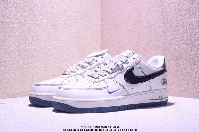 Limited overseas sale! Company-level Nike Air Force 1 '07 Low "Stussy co-branded gray base with black hook" Air Force One low-top sneakers, casual shoes, hemming and sewing process is difficult, original last, original cardboard, original shoe box, custom hardware accessories, built-in full-palm air cushion, original sole