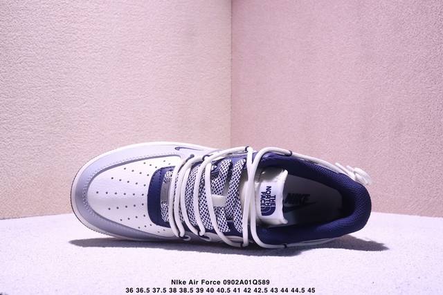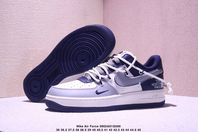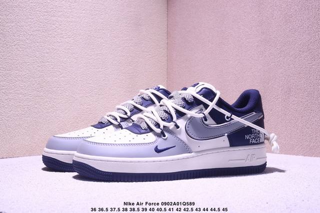 Limited overseas sale! Company-level Nike Air Force 1 '07 Low "The North Face Joint Gray-Blue Drawstring" Air Force One low-top sneakers, casual shoes, hemming sewing process is difficult, original last, original cardboard, original shoe box, custom hardware accessories, built-in full-palm air cushion, original sole