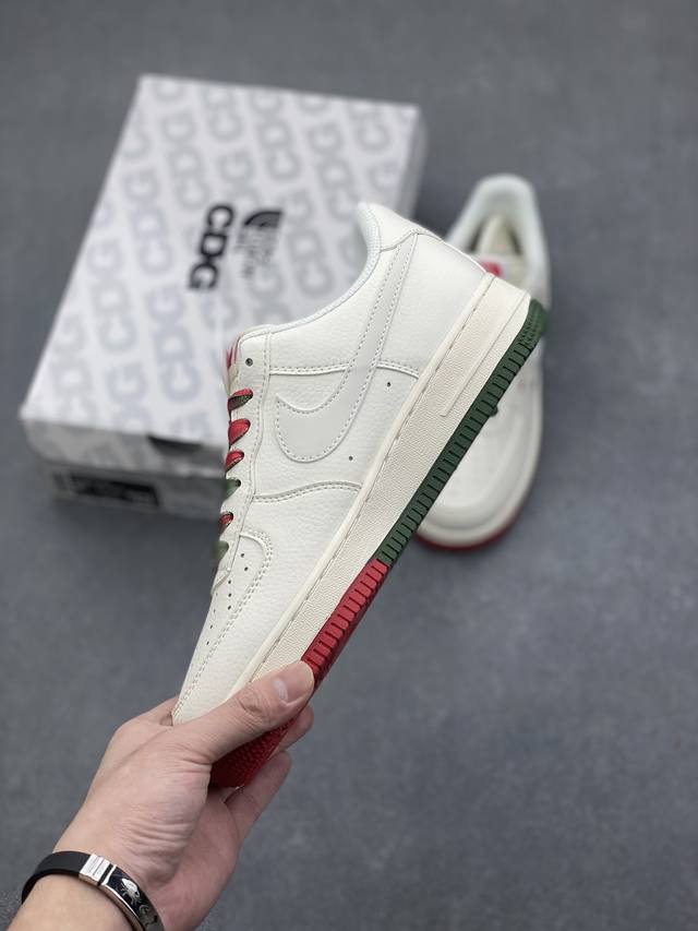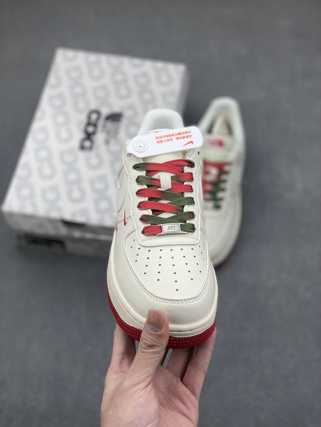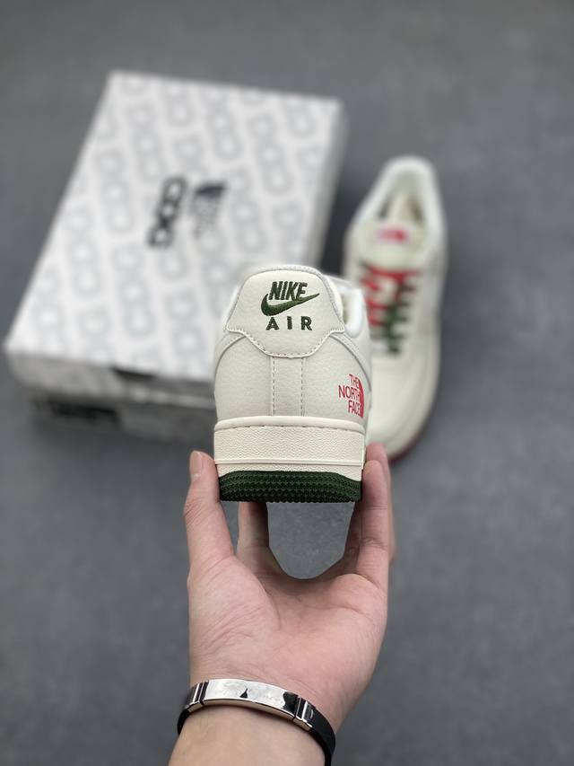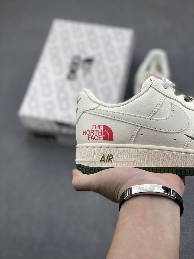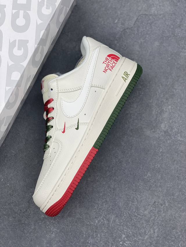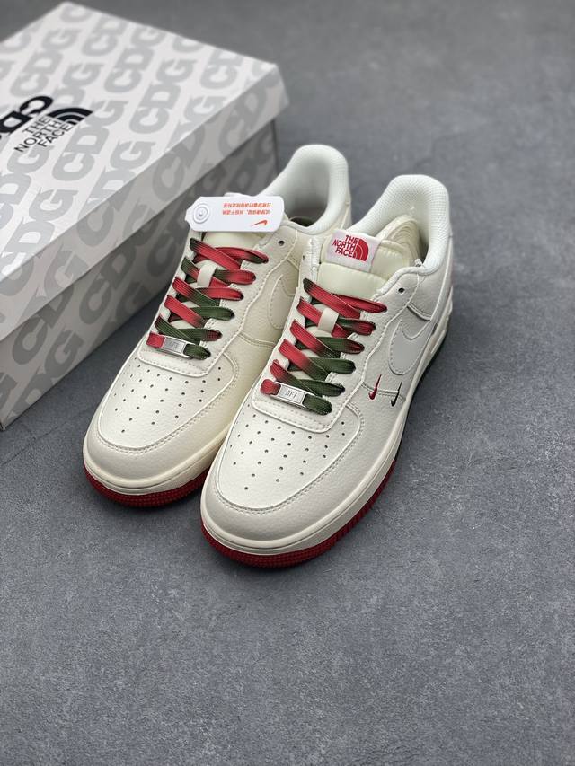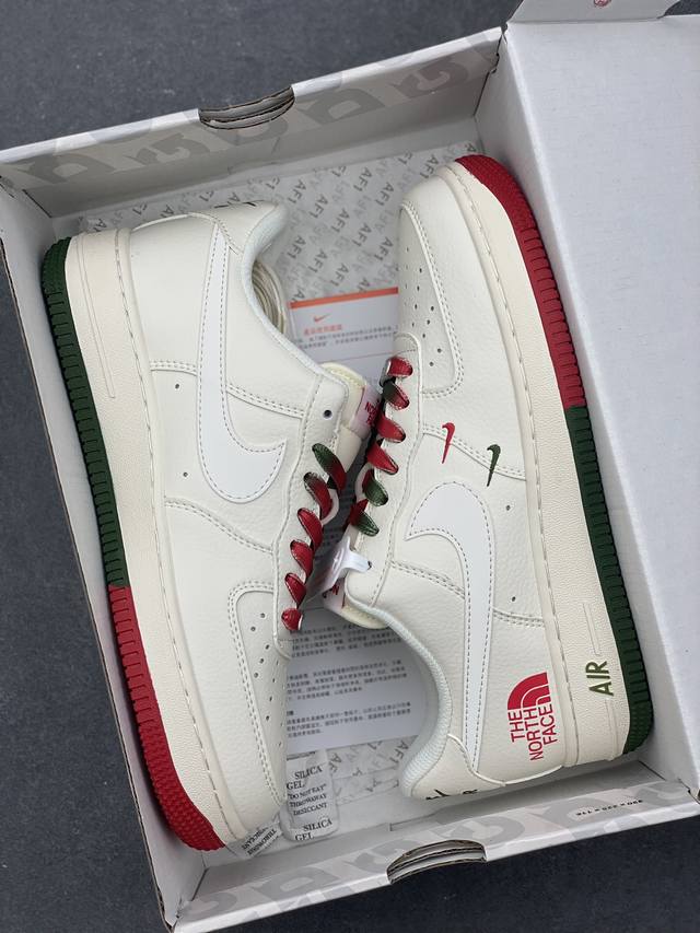 Limited overseas sale! Company-level Nike Air Force 1 '07 Low "The North Face Joint Brand - Beige, Red and Green" Air Force One low-top sports shoes and casual shoes. The hem sewing process is difficult. Original last, original cardboard, original shoe box, customized hardware accessories, built-in full-palm air cushion, original sole